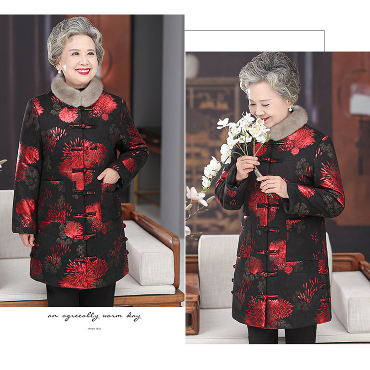 簡溪おばあちゃんの冬用ダウンジャケット レディース 2025年新作 お年寄りのお母様向けのお祝い冬服 中高年女性用冬コート