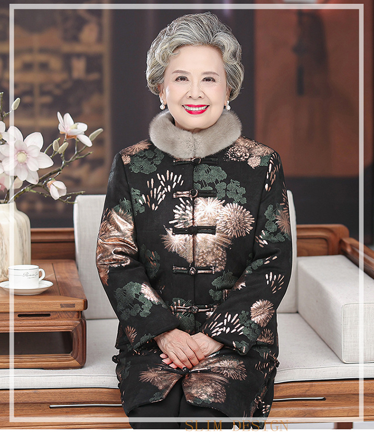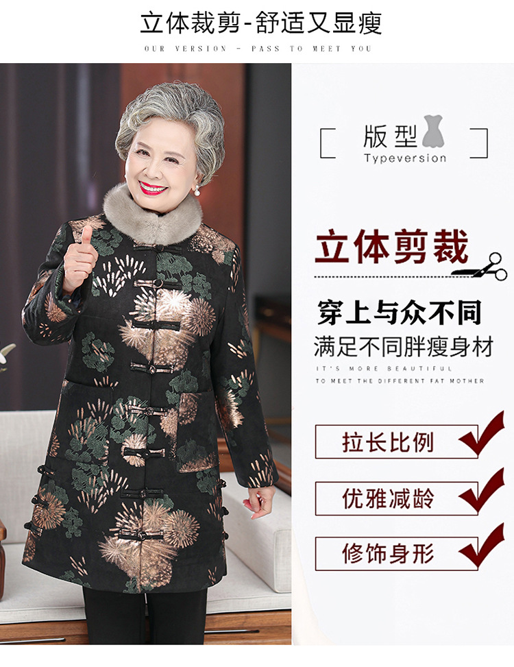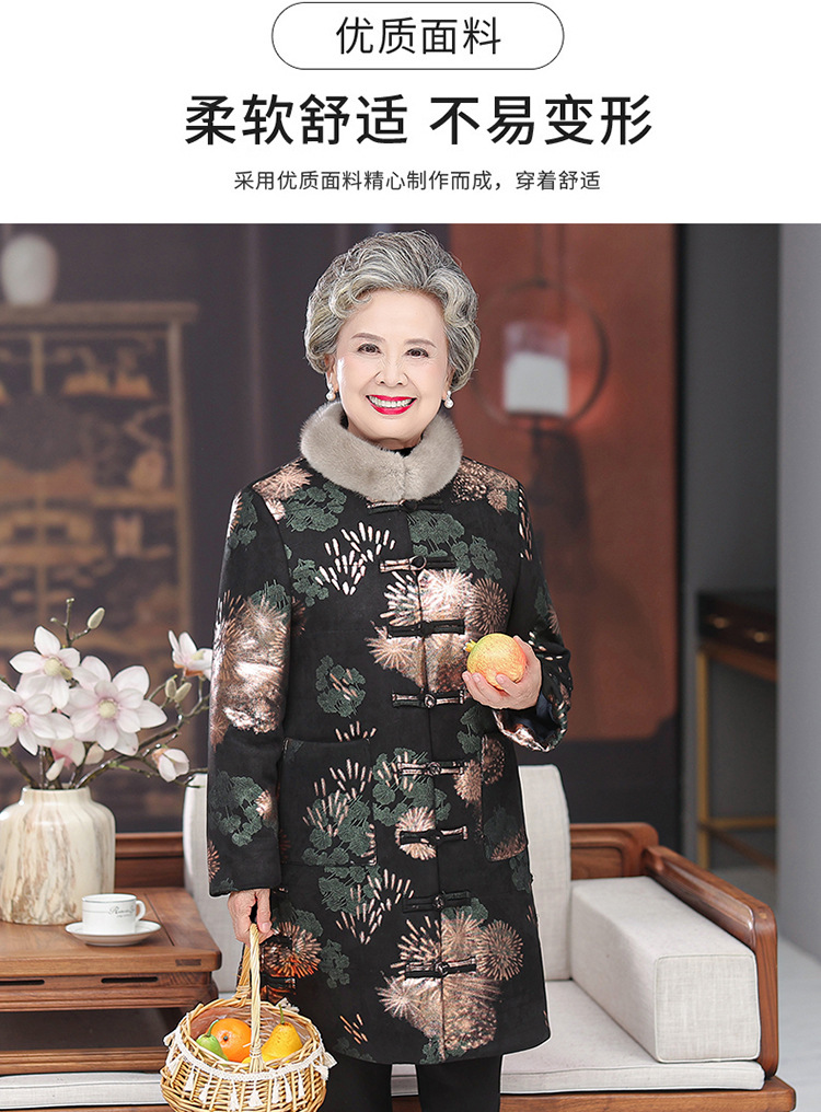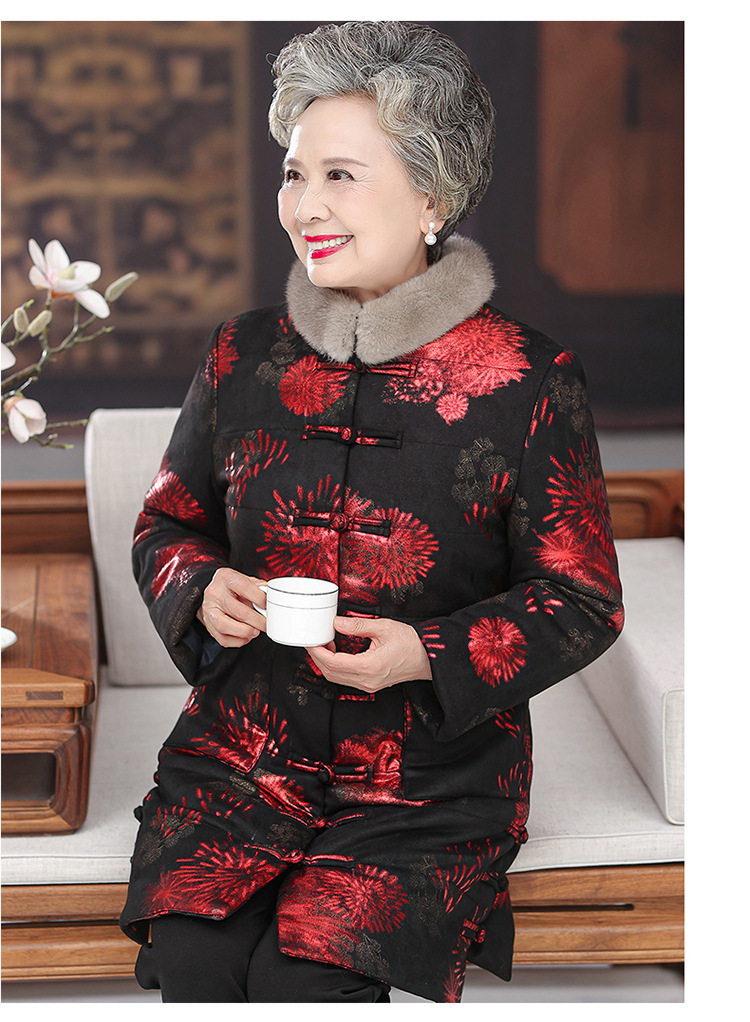 高齢者の冬服の女性のおばあさんは中国式の毛皮のコートのお母さんの毛皮の一体のコートの奥さんのミンクの上着を詰めます。