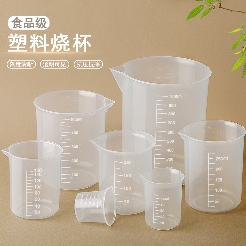 プラスチックビーカー計量カップ 50 ミリリットル-1000 ミリリットル PP 厚みのある両面スケールラボミルクティーショップ特別な計量カップ