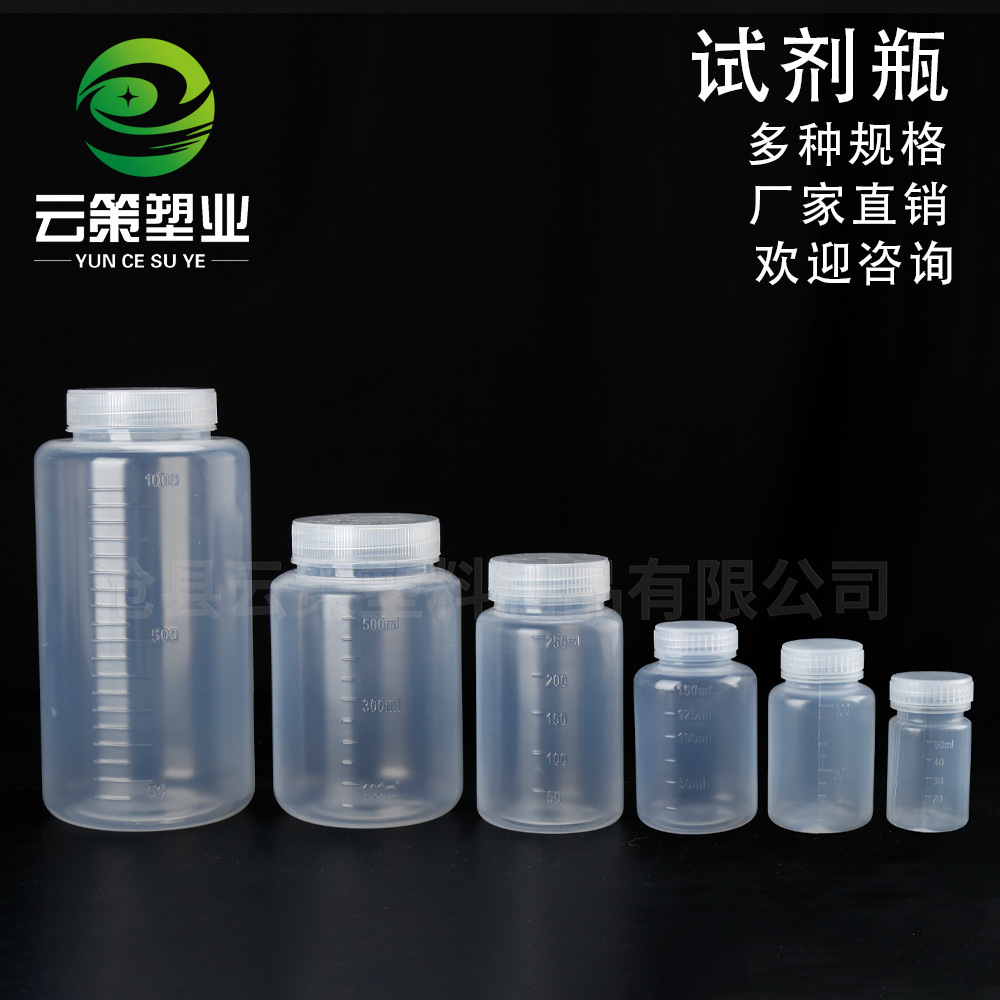 高級試薬瓶8-15-30-250/500/1000ミリリットルPP液体プラスチックサンプル瓶大口試薬瓶