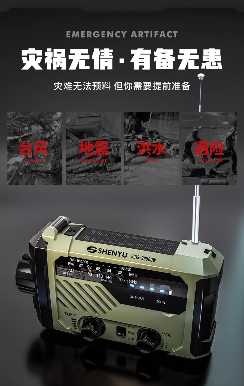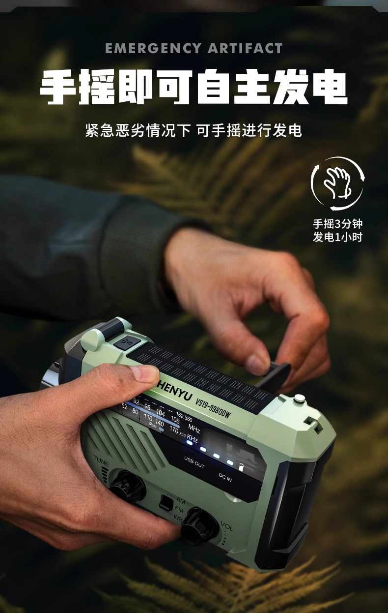 手摇发电收音机多功能手电筒太阳能充电宝式应急防灾应急生存装备