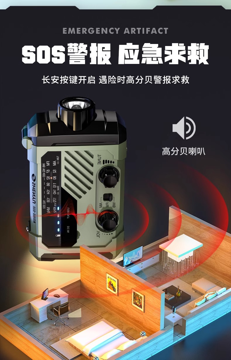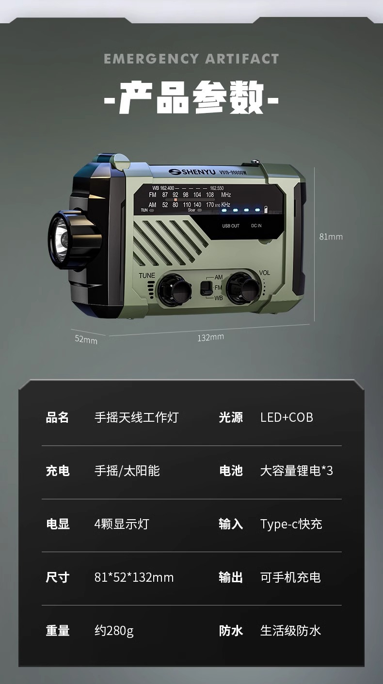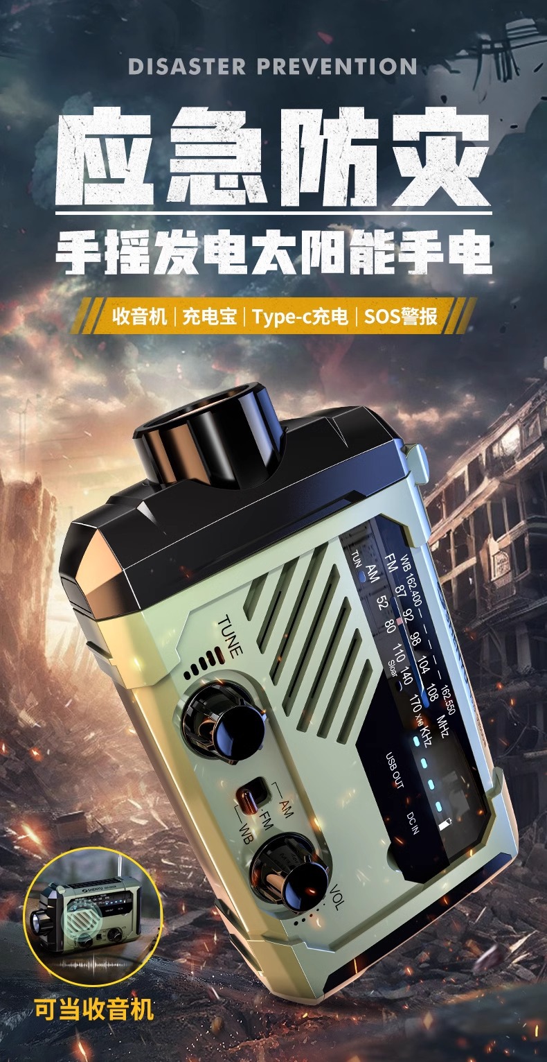 手电应急防灾多功能手摇发电手电筒手摇发电收音机手机应急灯户外