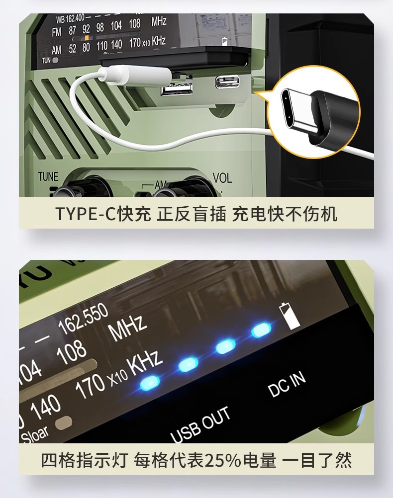 手摇发电手电筒音机便携战备应急防灾多功能手机充电太阳能照明