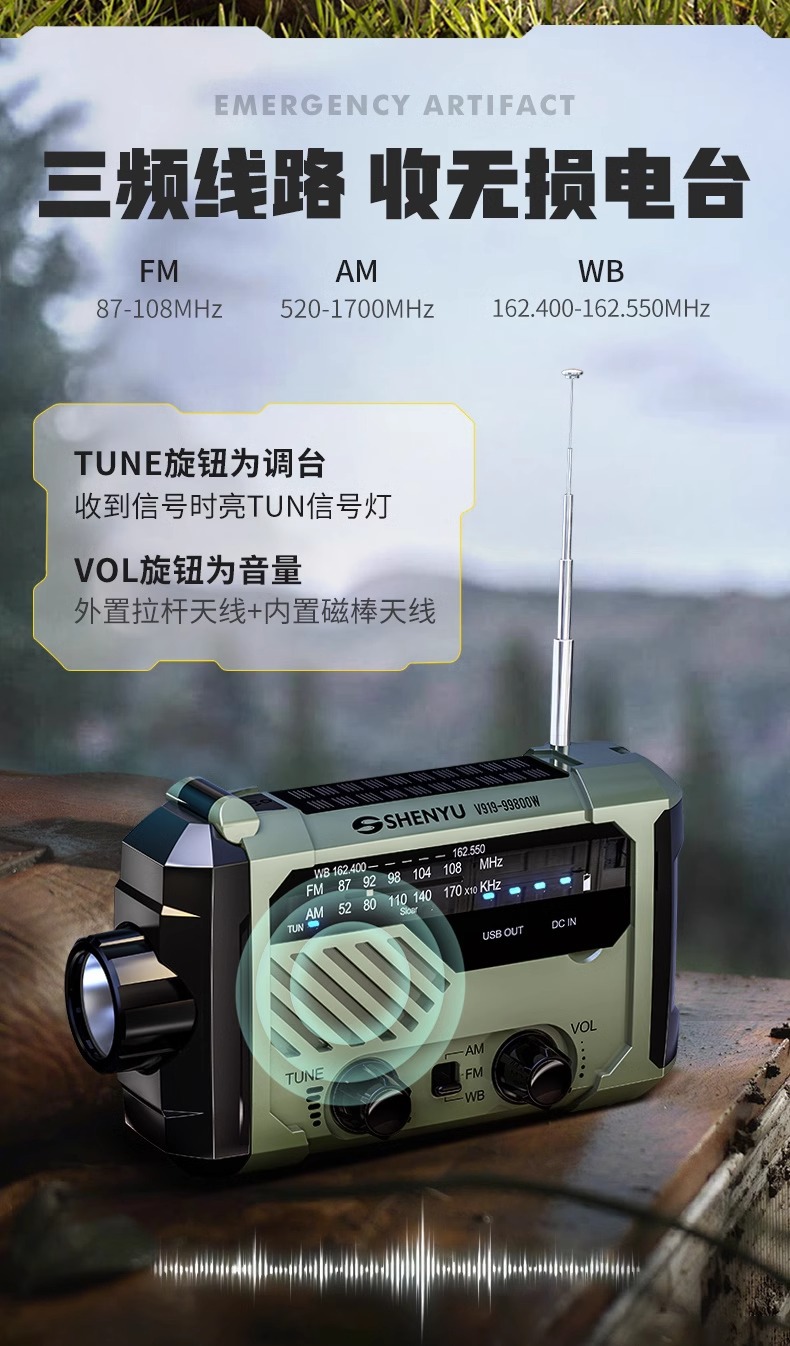 ウォルソンメーカーXLN-290WBラジオハンドシェイク多機能緊急ソーラー緊急懐中電灯