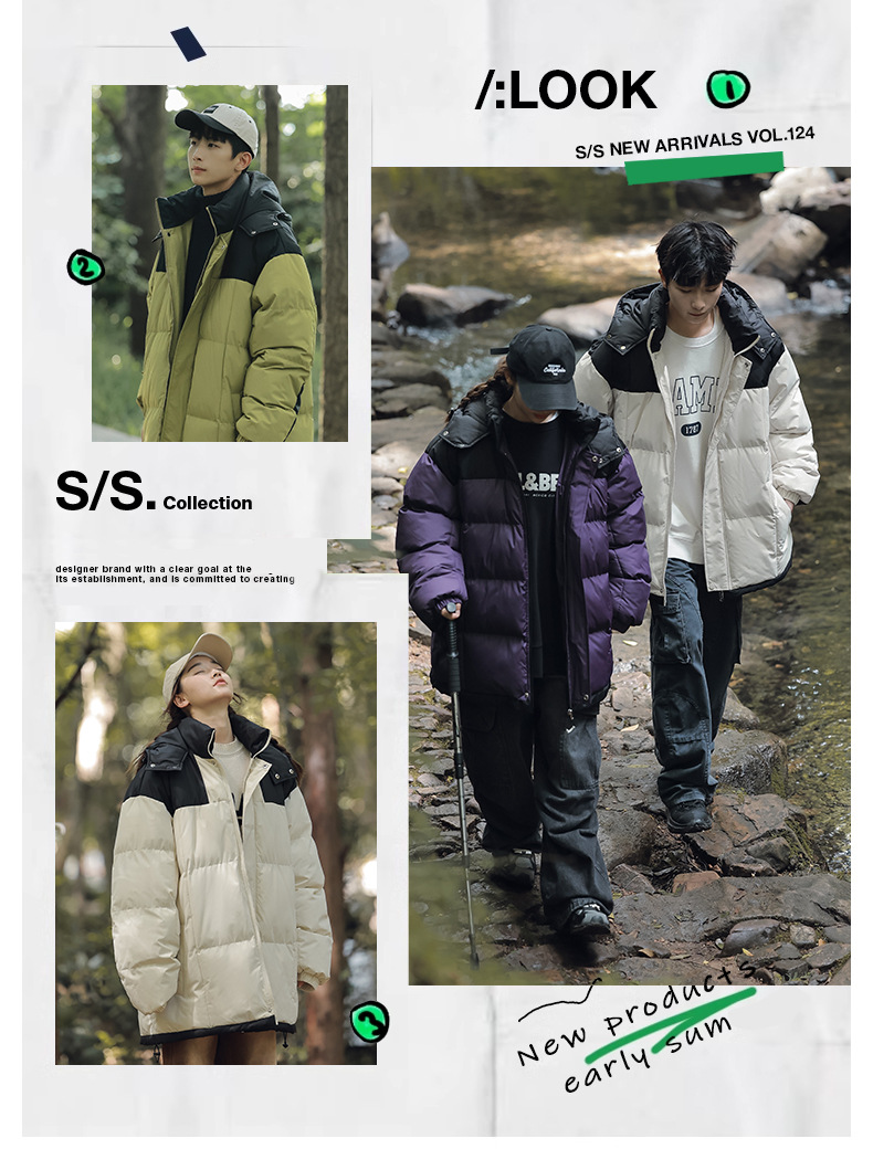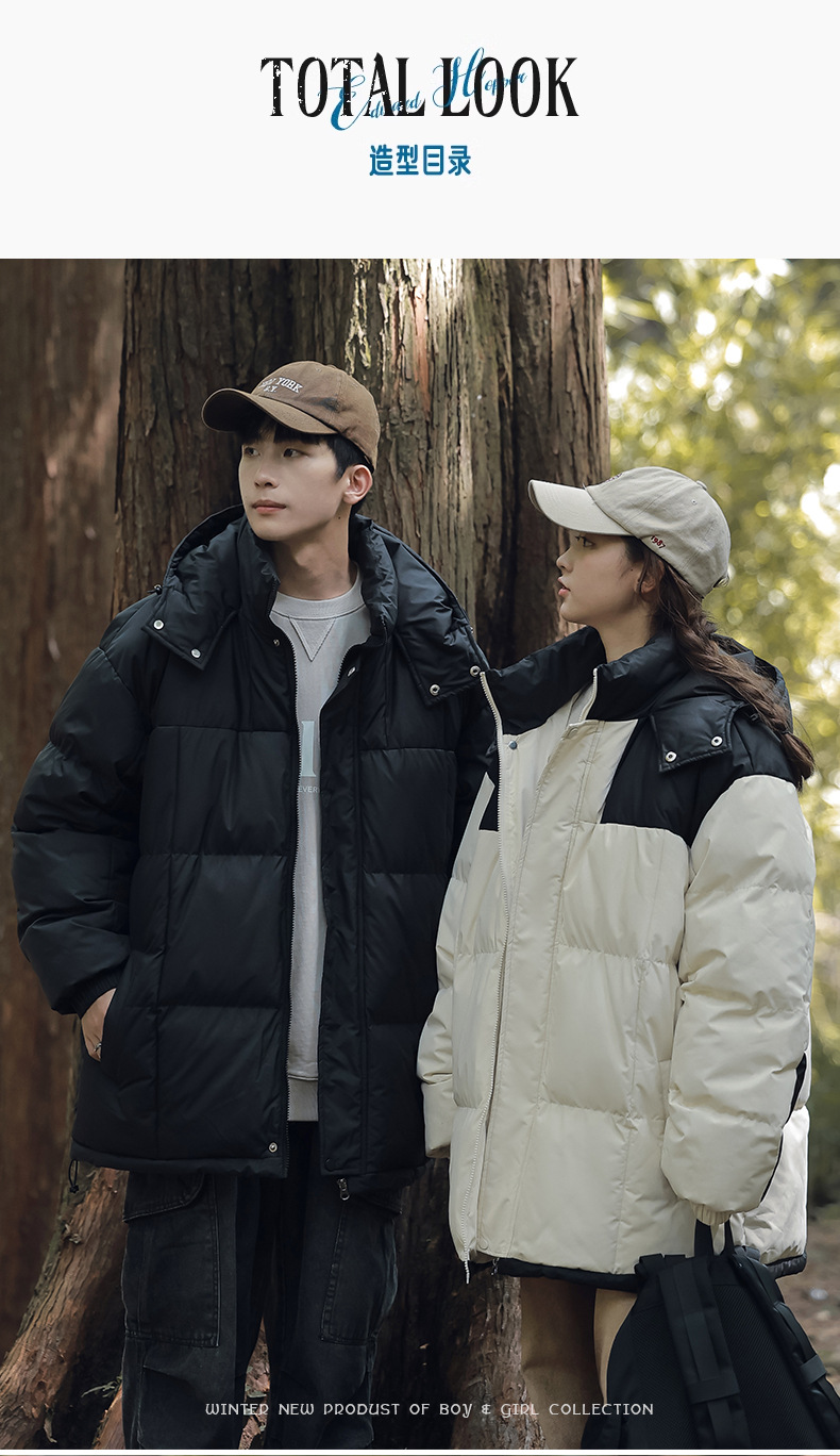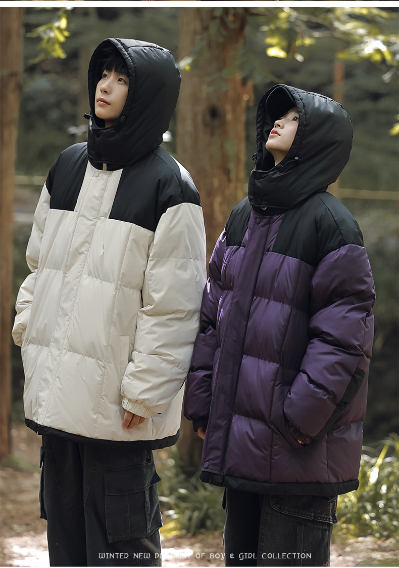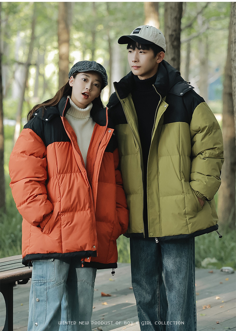 杰克传洋男装棉服美拉德撞色里料连帽面包服男女冬季美式保暖外套