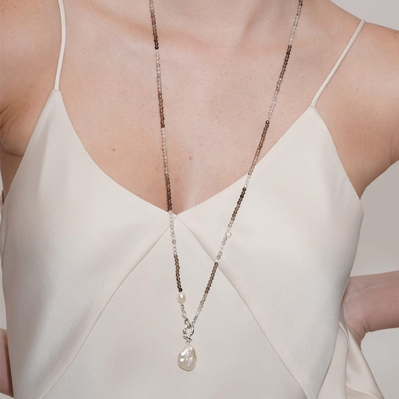 2025 新天然クリスタルバロックパールロングネックレスレトロハイエンドビーズセーターチェーンミニマリスト