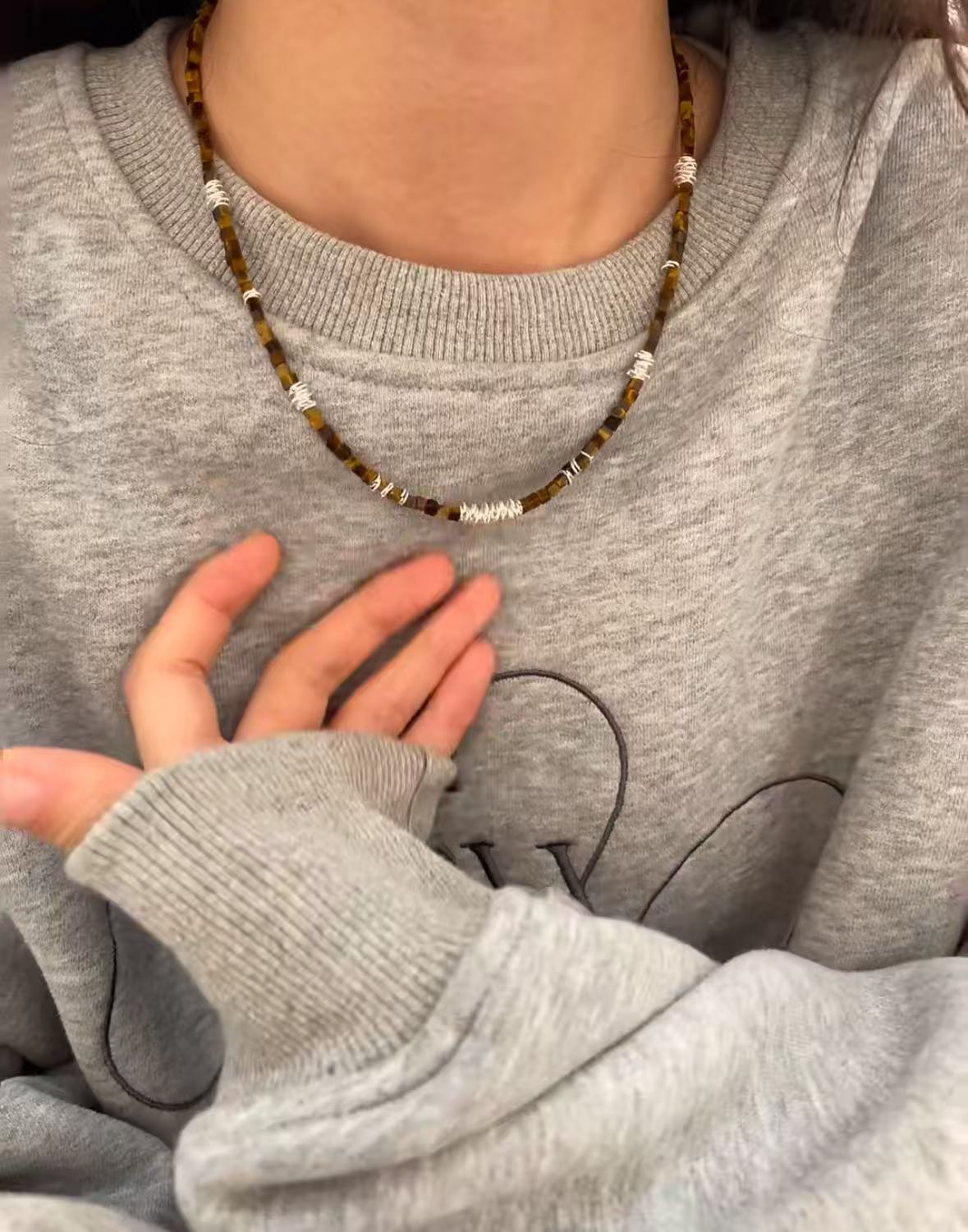 メイラード秋冬ビーズレトロネックレス天然虎目石スペーサーチタン鋼色褪せない鎖骨チェーン工場直販