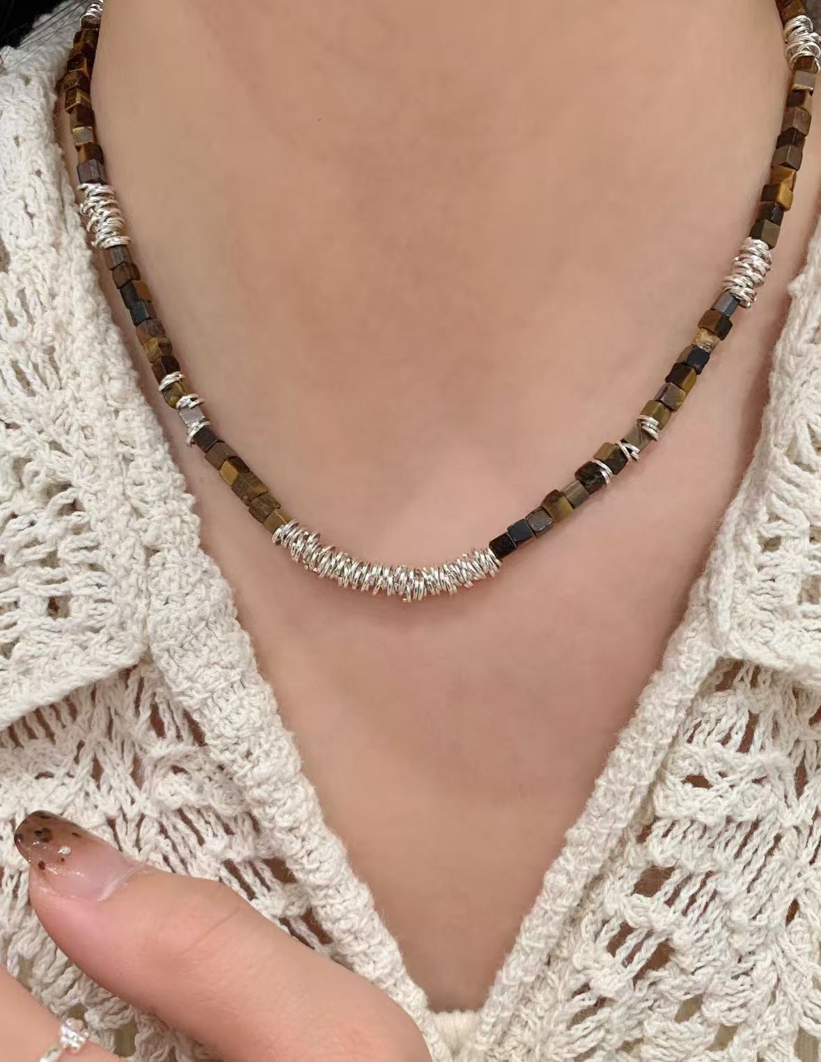 RORY 925純銀虎眼石ビーズネックレス女性大衆デザイン感復古銀リングファッション鎖骨鎖