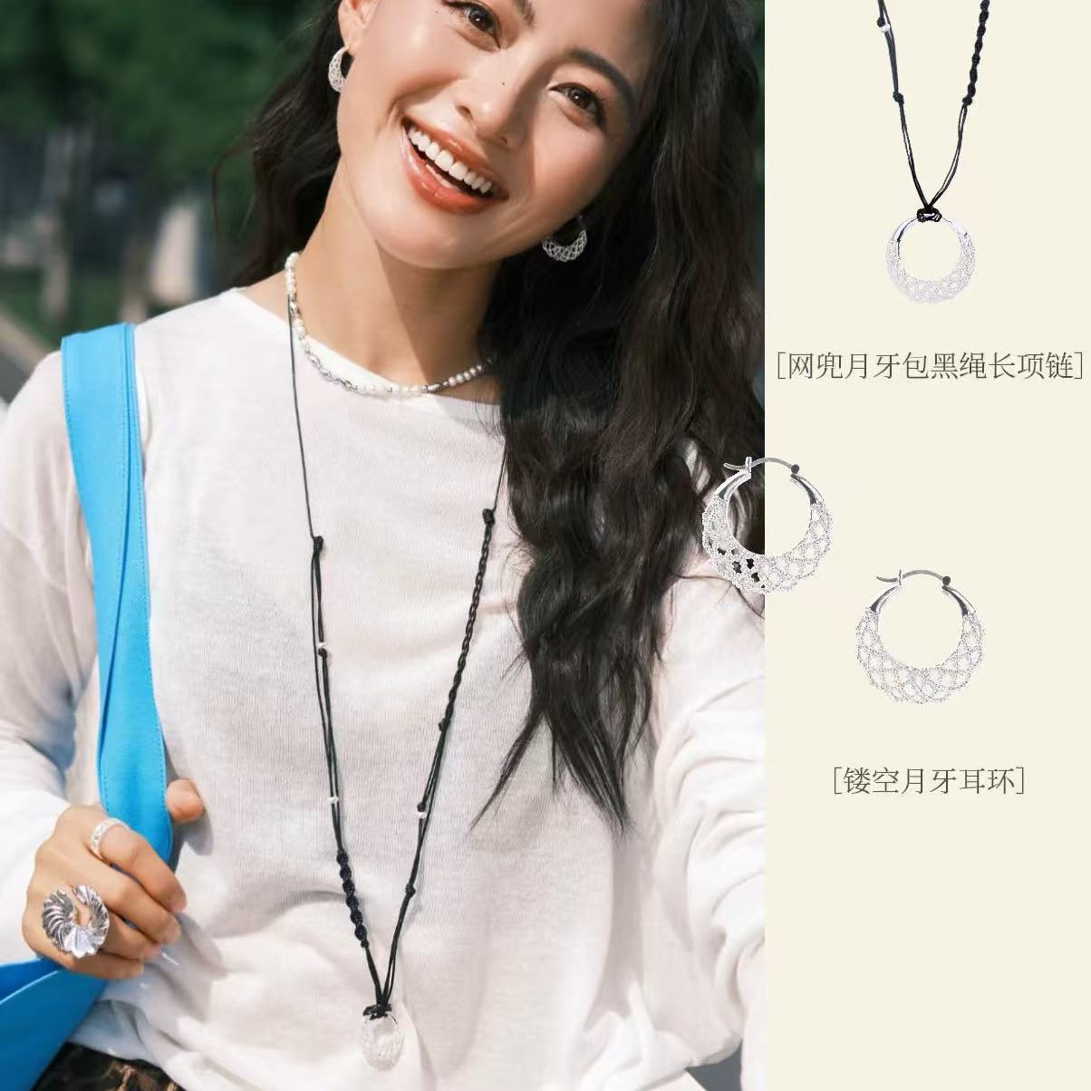 网兜月牙包长项链可拆卸女叠戴高级感小众设计配饰礼物毛衣链项链