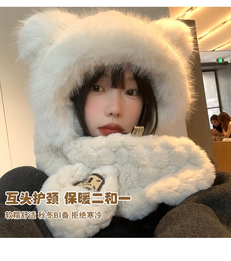 儿童帽子宝宝围巾一体秋冬季可爱超萌帽男女童加厚保暖婴儿护耳帽