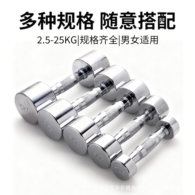 メッキダンベル純鉄純鋼中実女性フィットネスメーカー直販1-10kg専門ジムセット