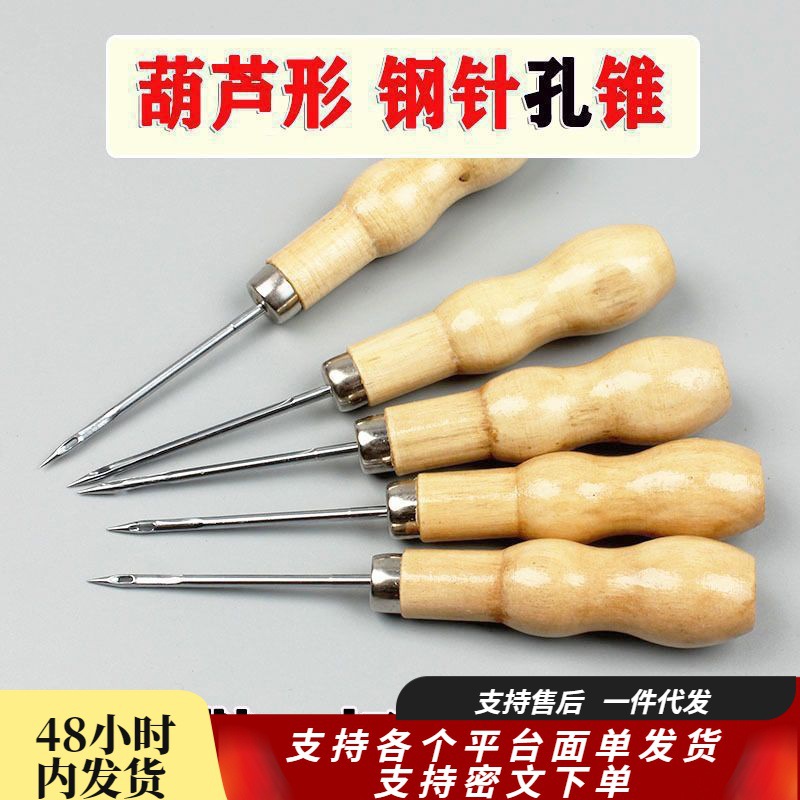 靴底の針に靴の縫い目を入れて錐の利器を包みます。ステンレスの錐の先のかぎ針は靴を修理します。