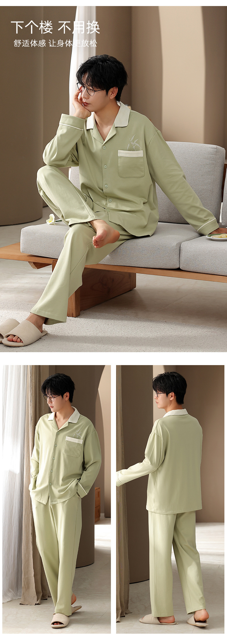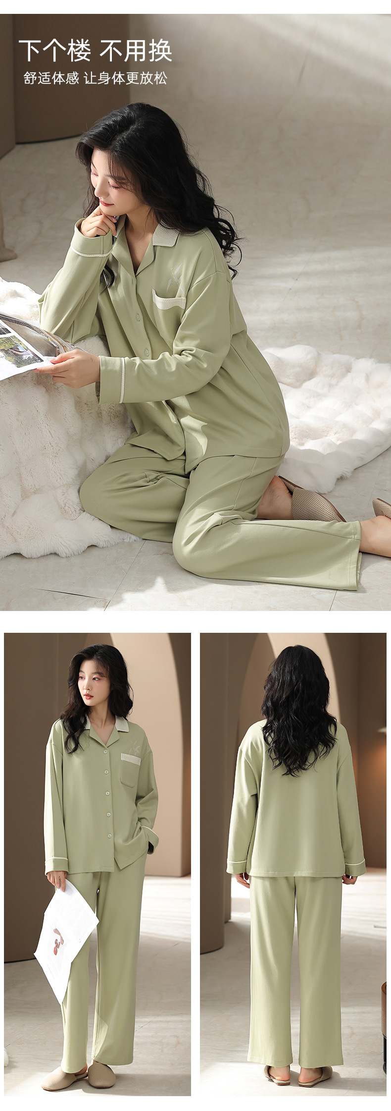 抗菌純綿カップルパジャマ女性春秋長袖カーディガン秋冬純色大きいサイズプルオーバー爽やか綿ホームウェア