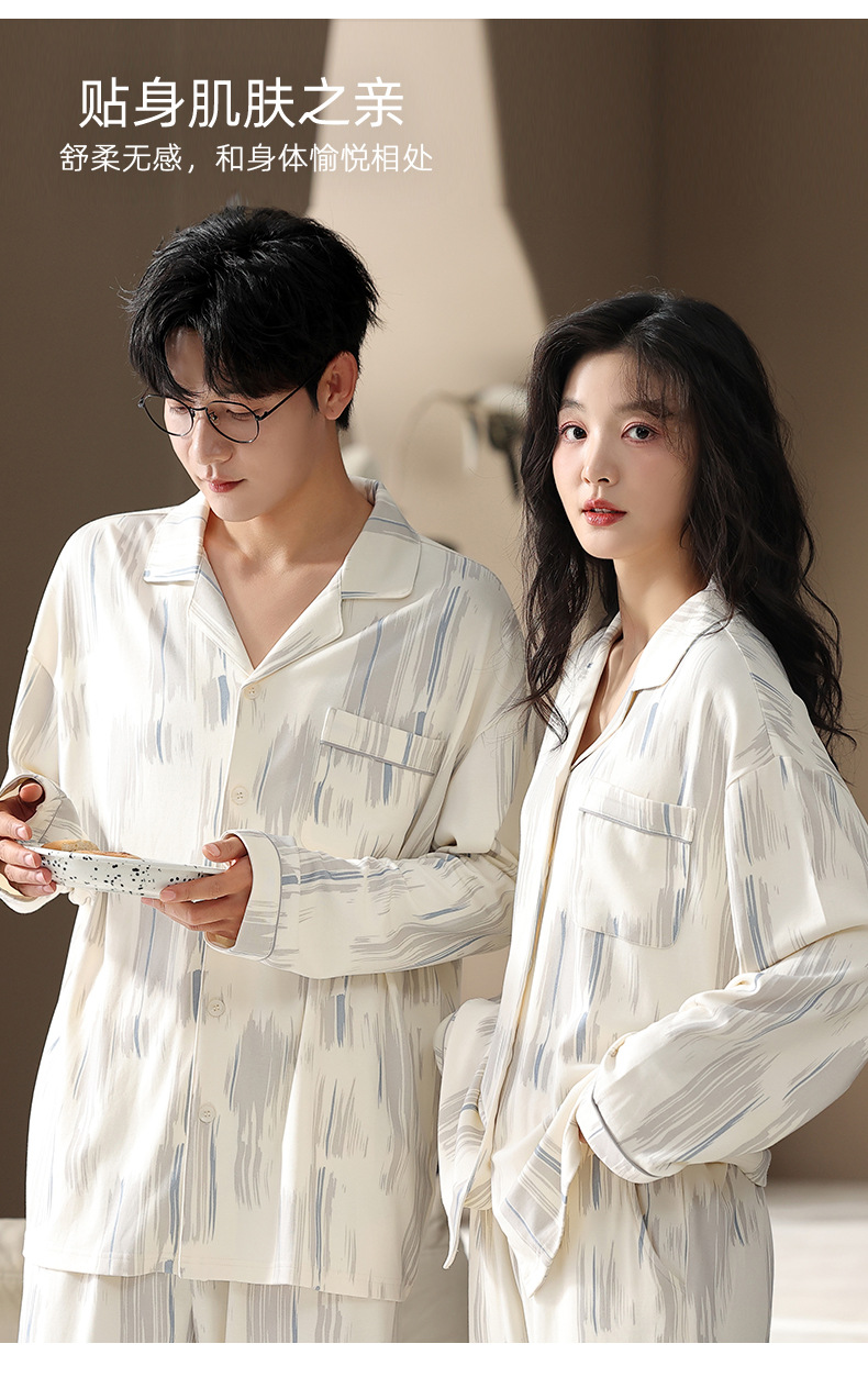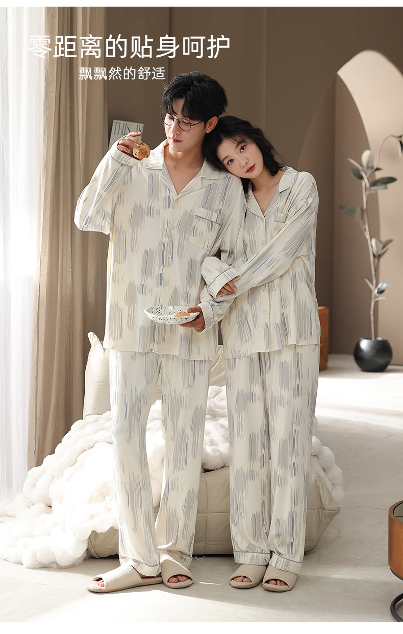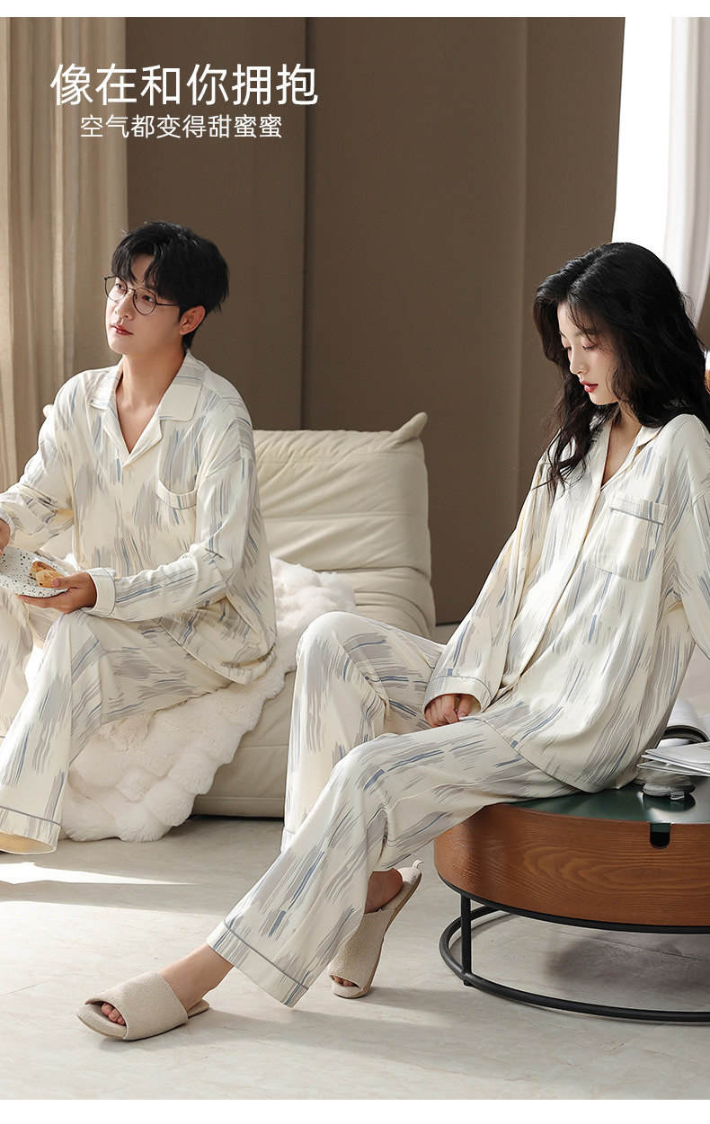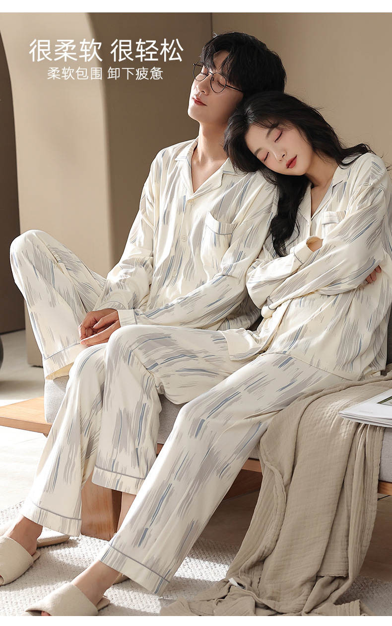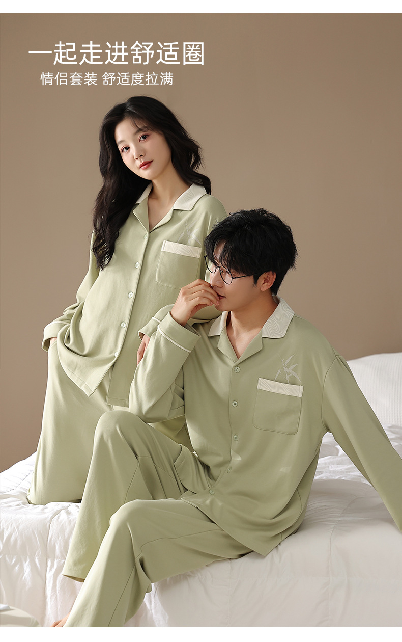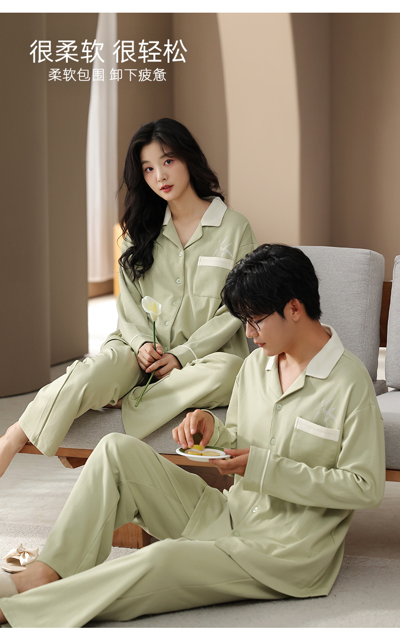 カップルパジャマ春と秋の長袖韓国風カーディガンセット秋の若者シンプルカジュアル女性男性