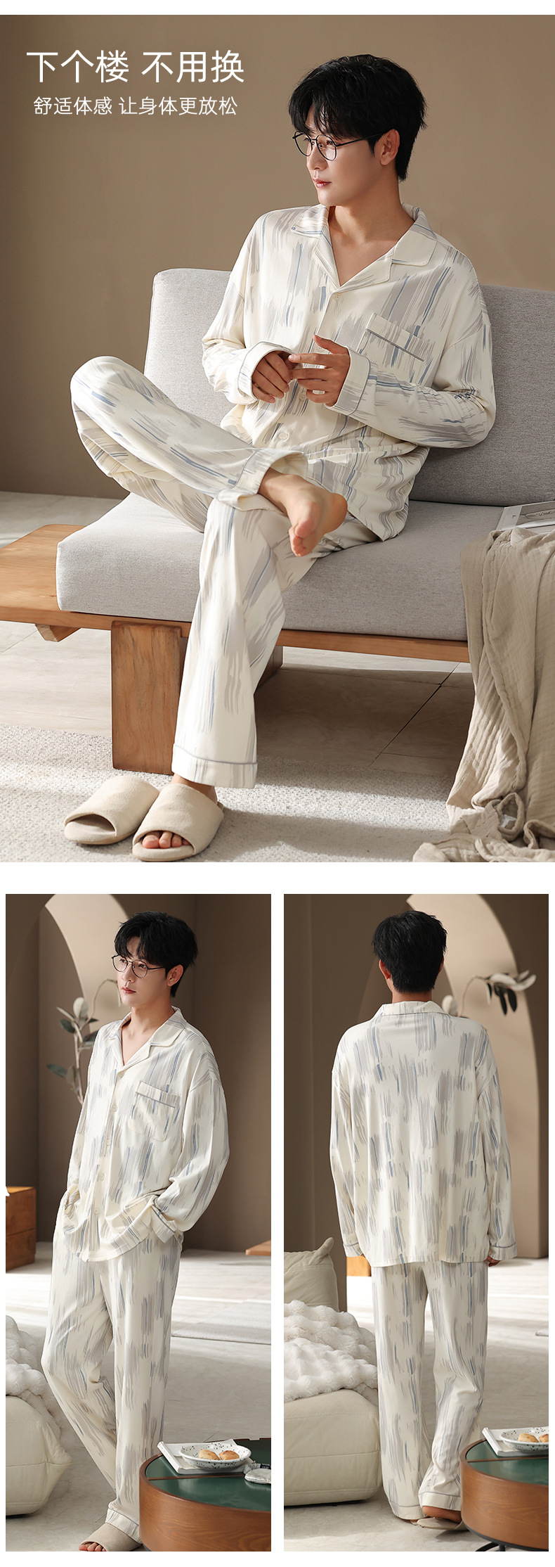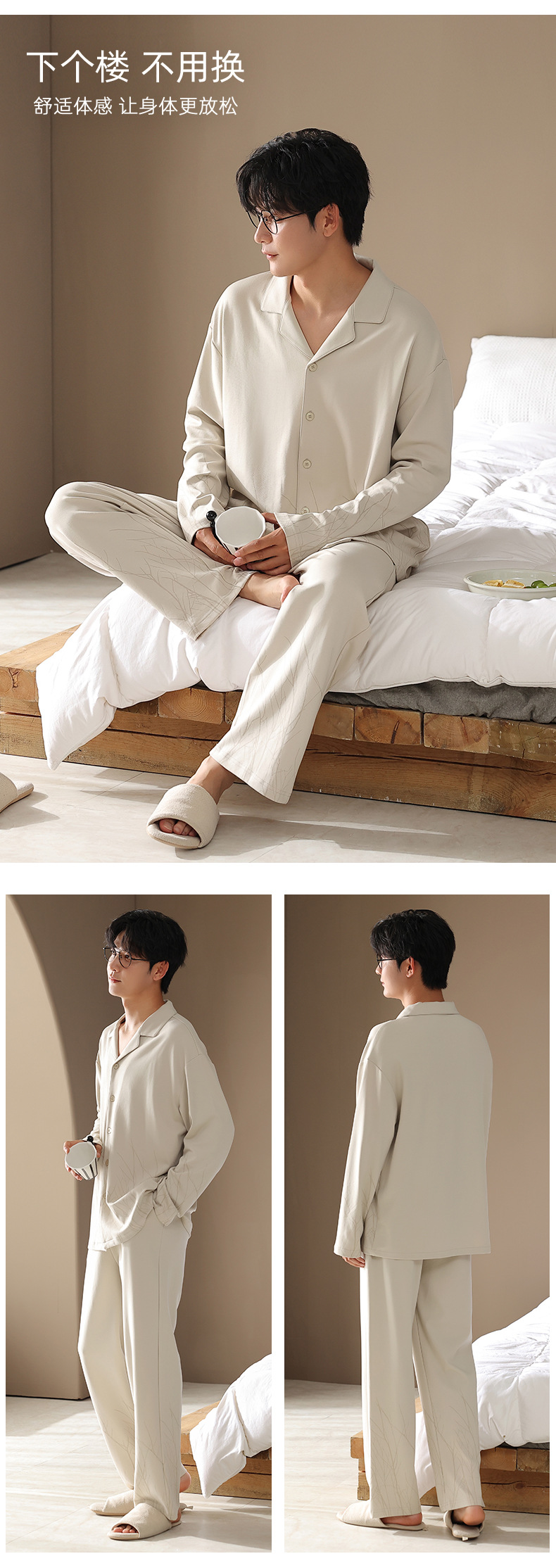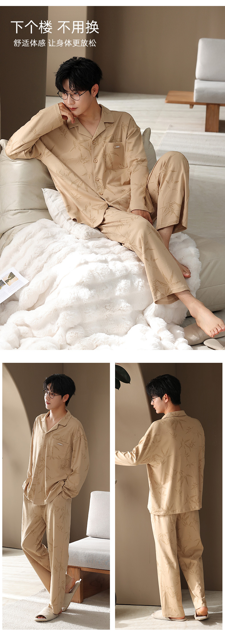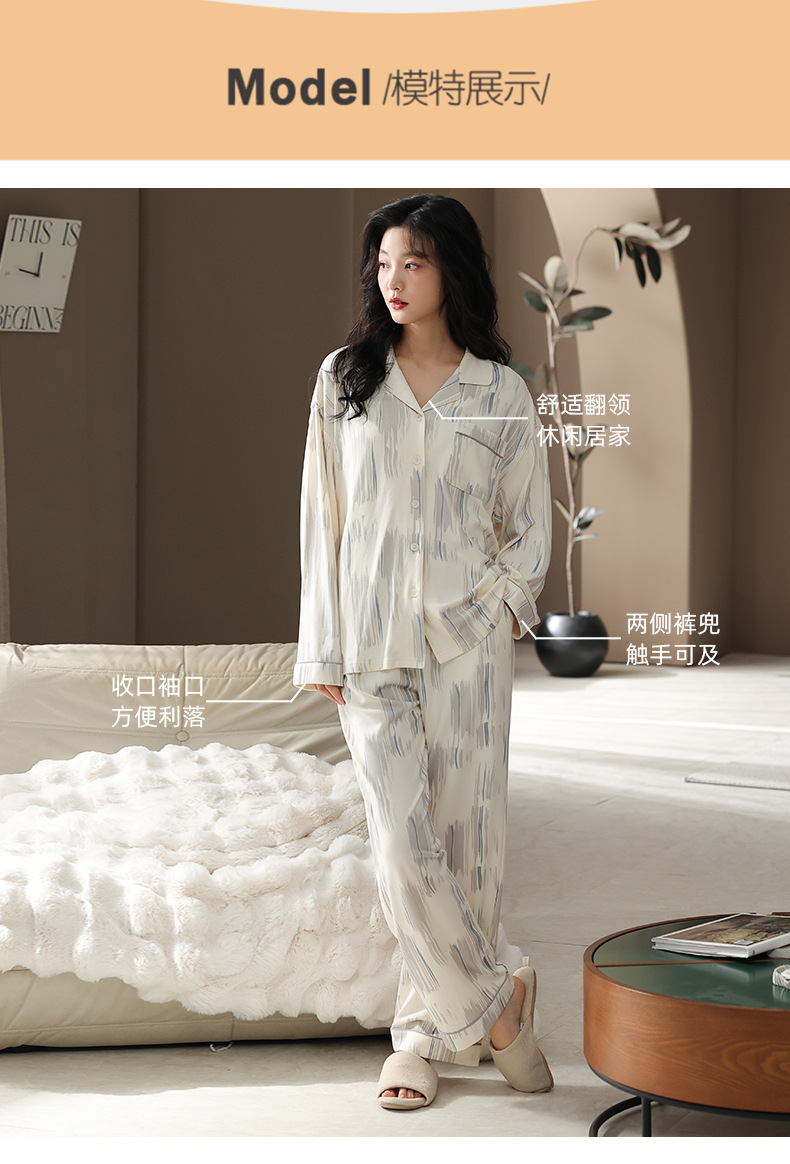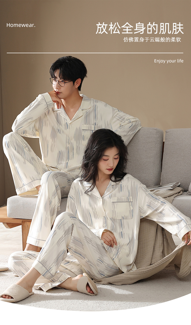 カップルパジャマ春と秋の長袖韓国風カーディガンセット秋の若者シンプルカジュアル女性男性