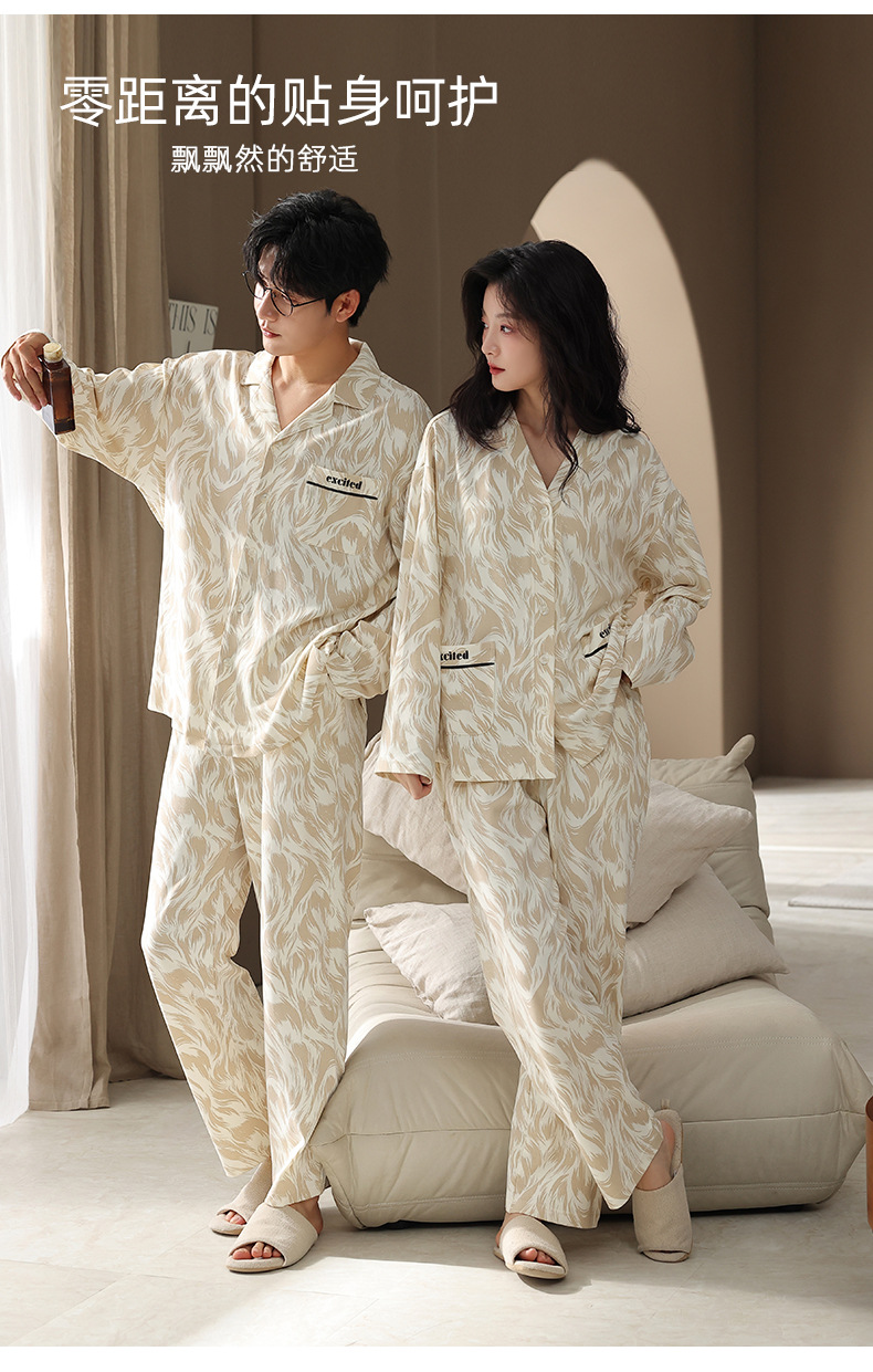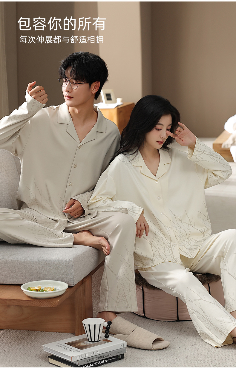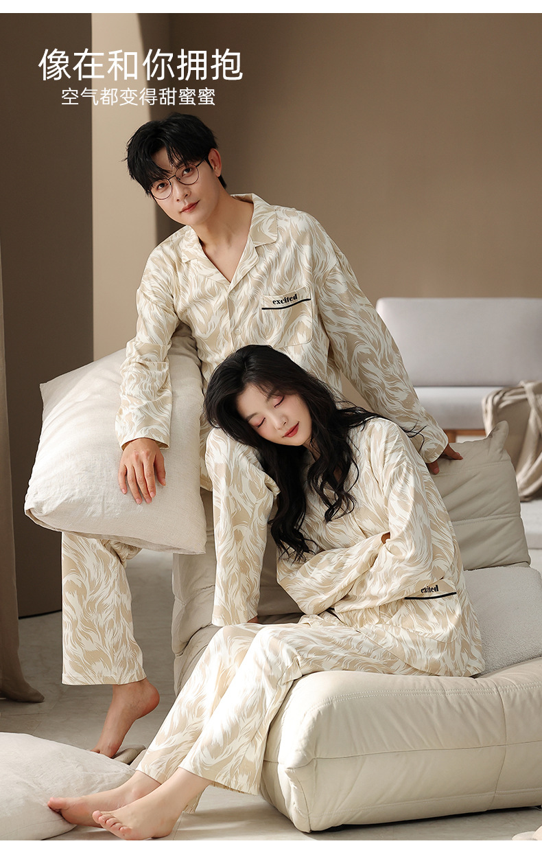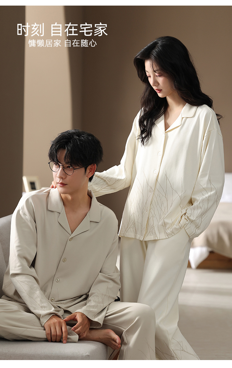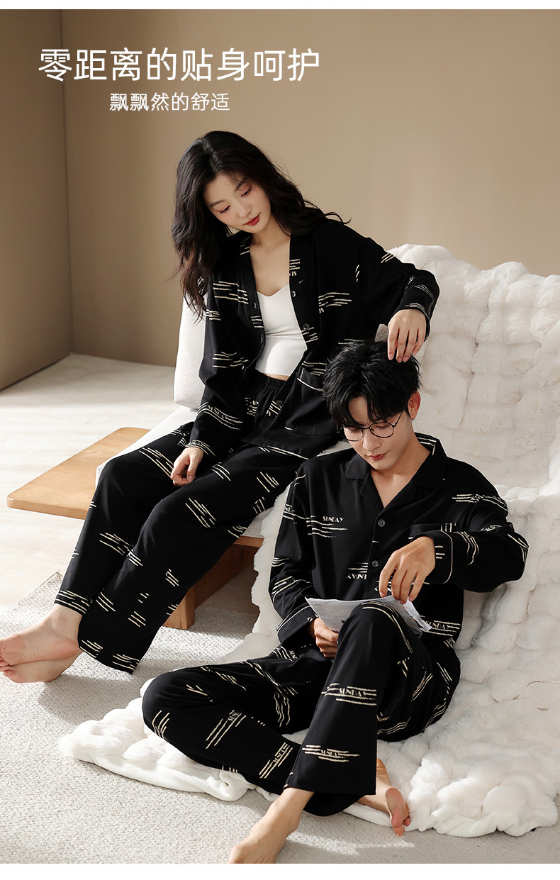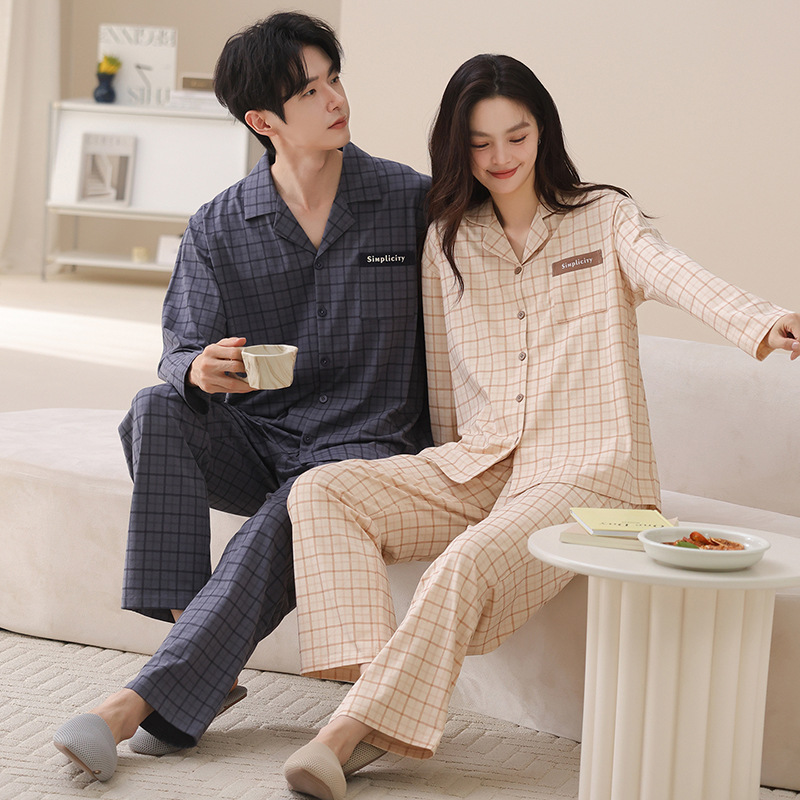 カップルパジャマ女性春秋純綿2025新型長袖秋冬カジュアル男性襟開きホームウェアセット