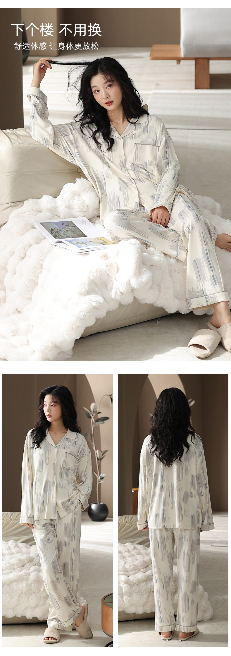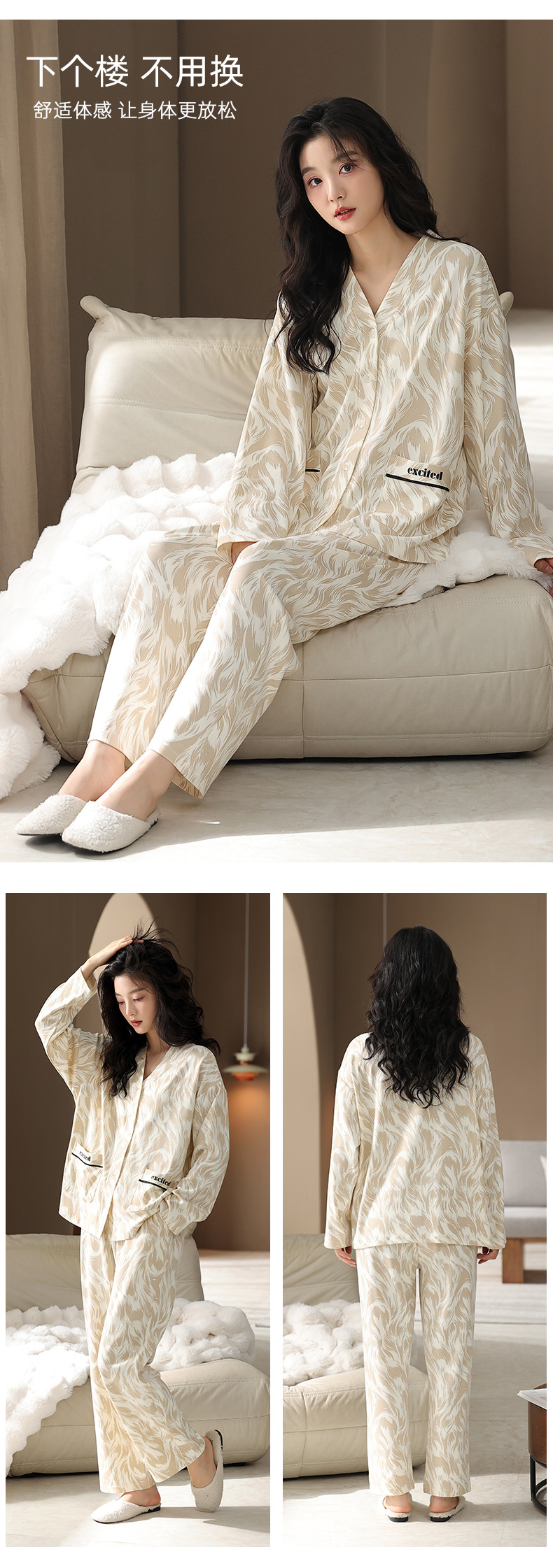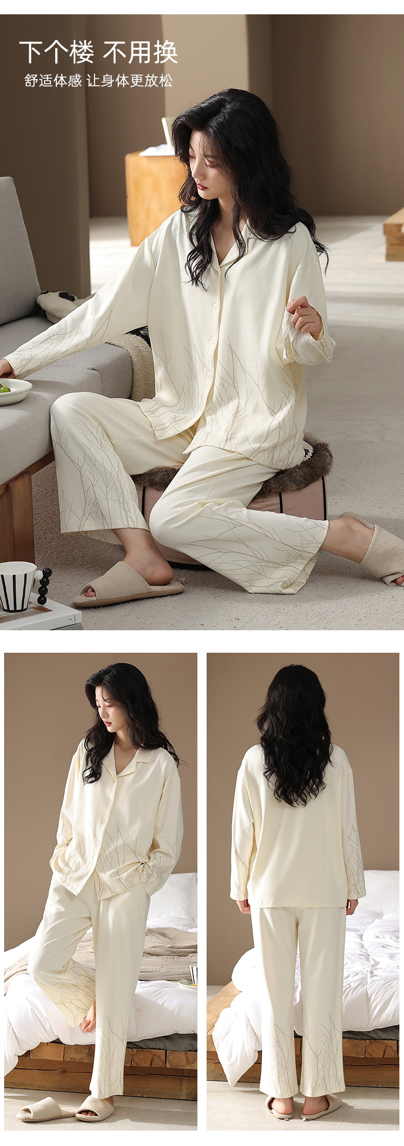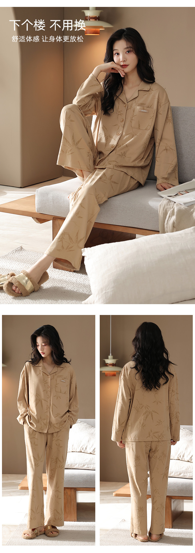 【7a抗菌】カップルパジャマ女性春秋長袖カーディガン