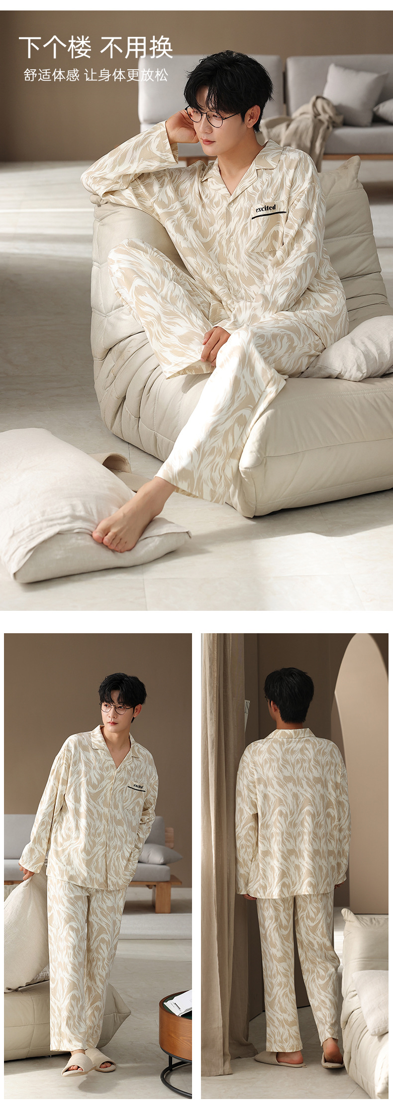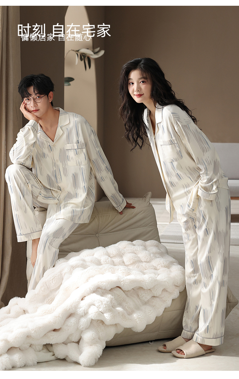 棉拉架春秋季情侣睡衣长袖一男一女新款翻领开衫纯棉家居服套装