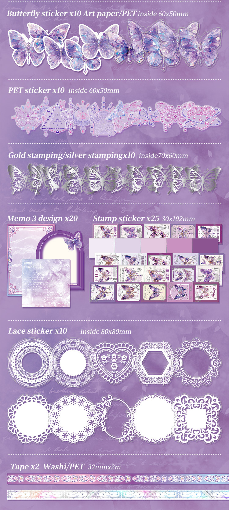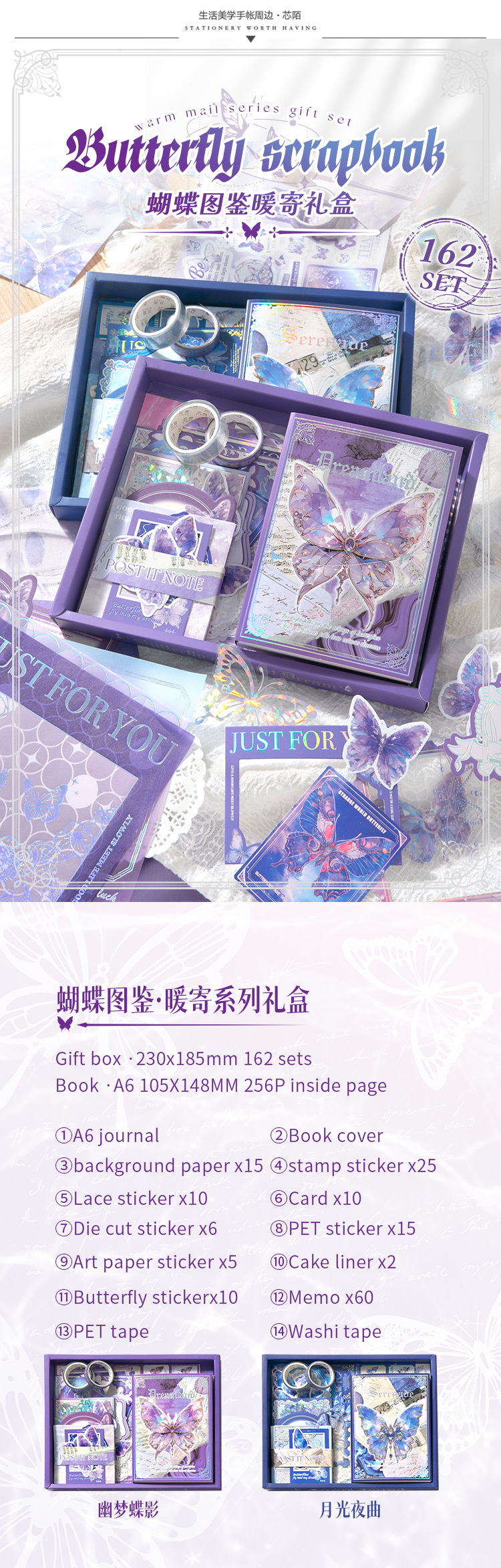 蝶々図鉴暖寄シリーズ女の子手帐シールギフトボックスかわいいテープ素材手帐セット