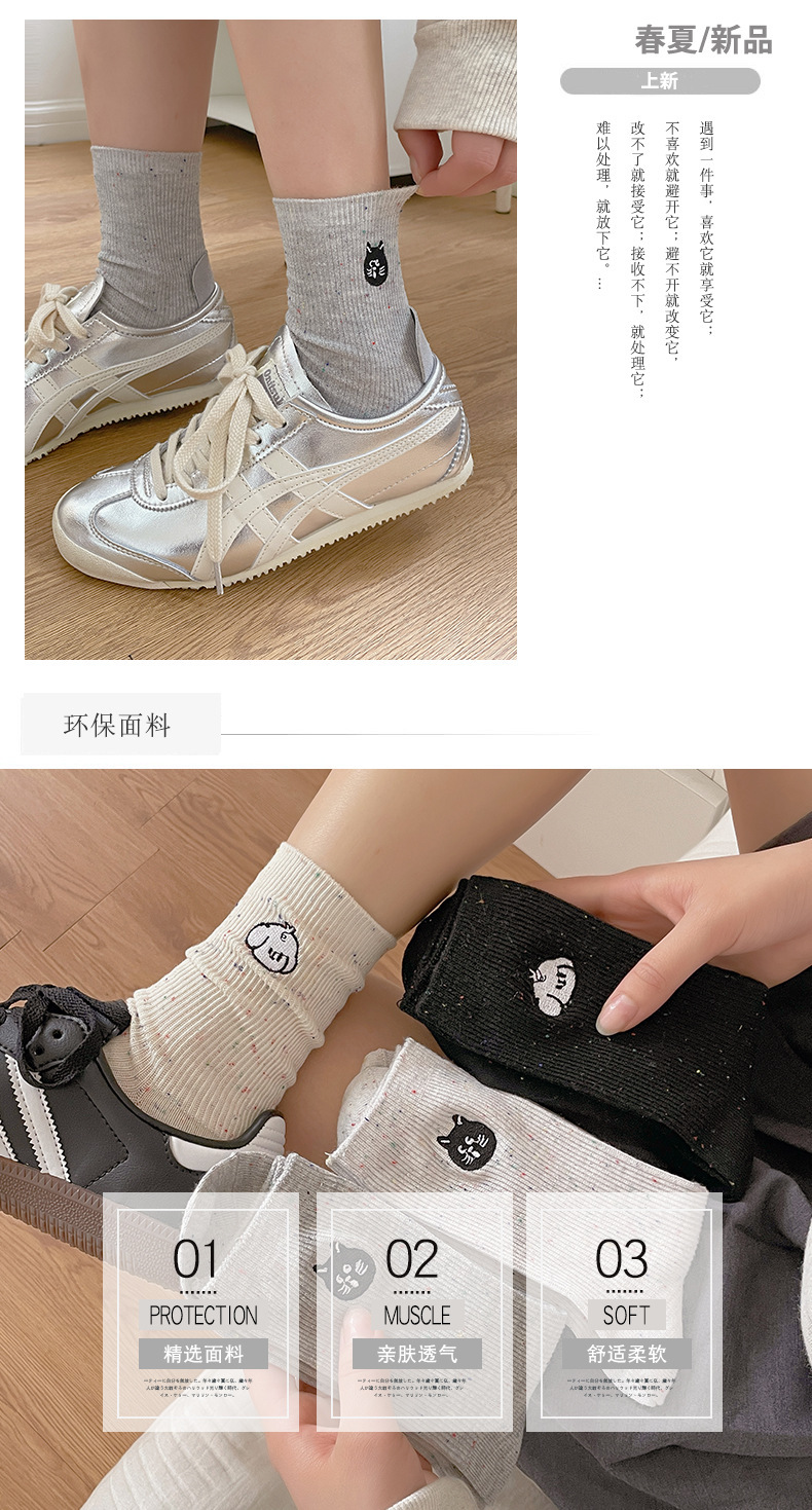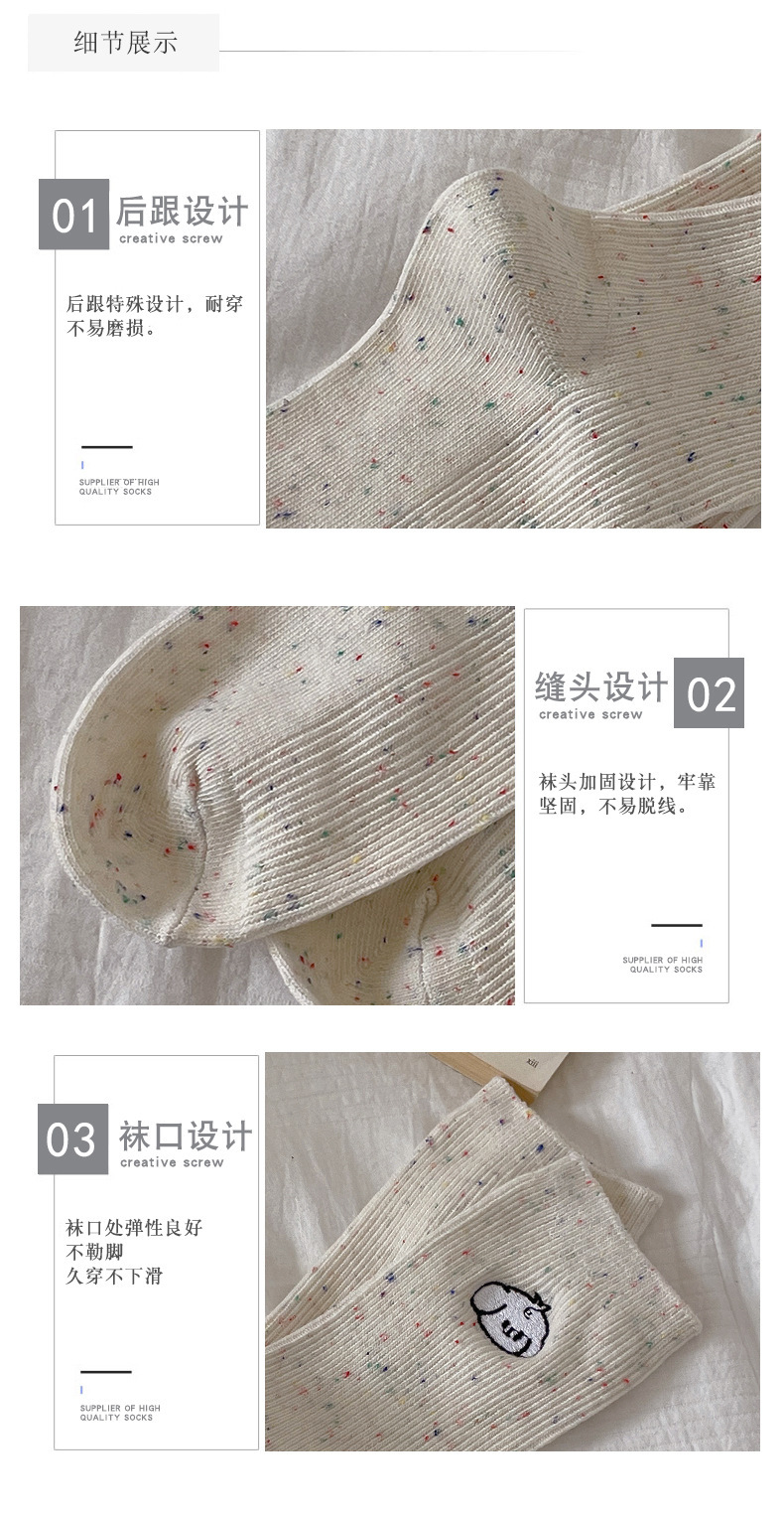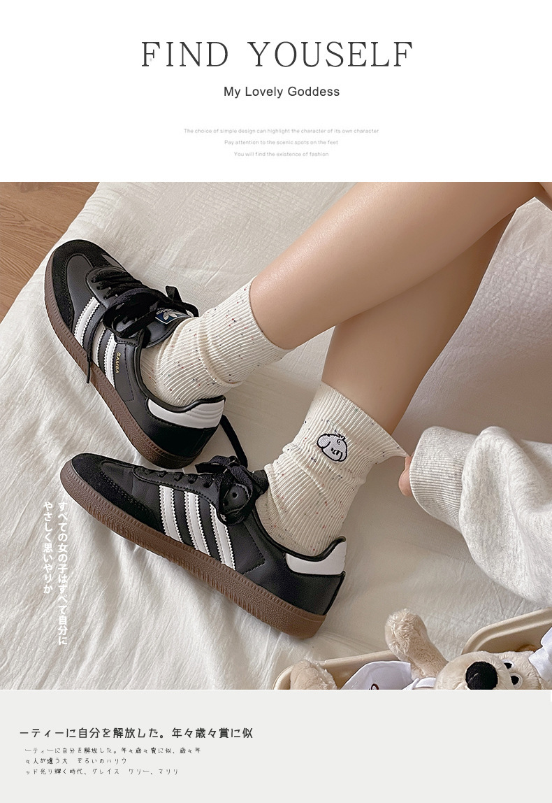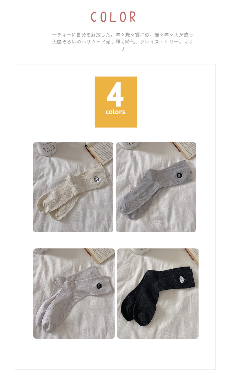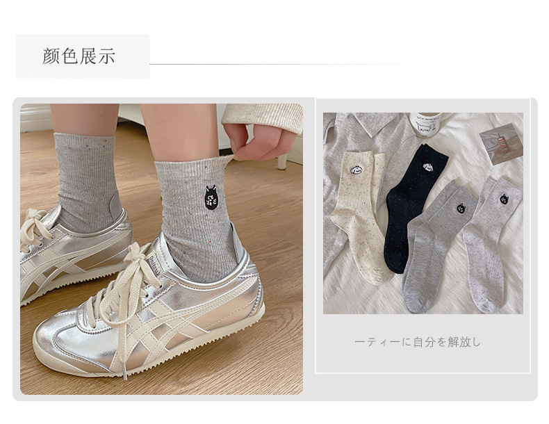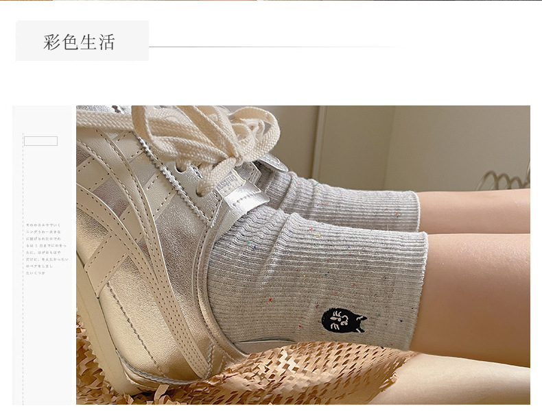 漫画刺繍靴下子供秋冬ミドルソックスかわいい日系綿ドット糸ins潮色スタッキングソックス春夏
