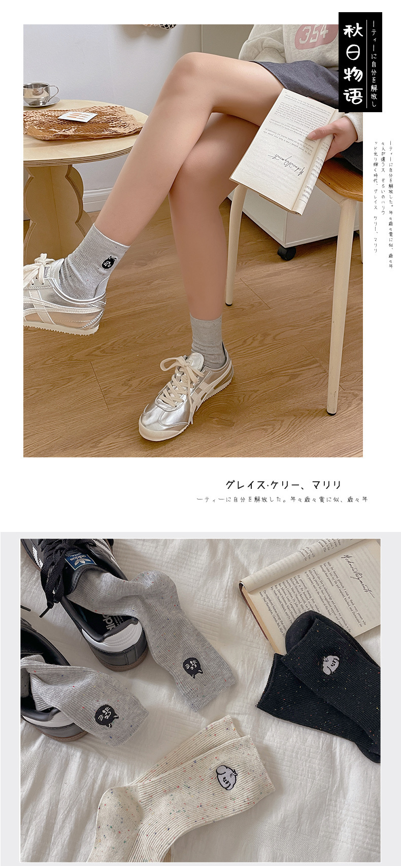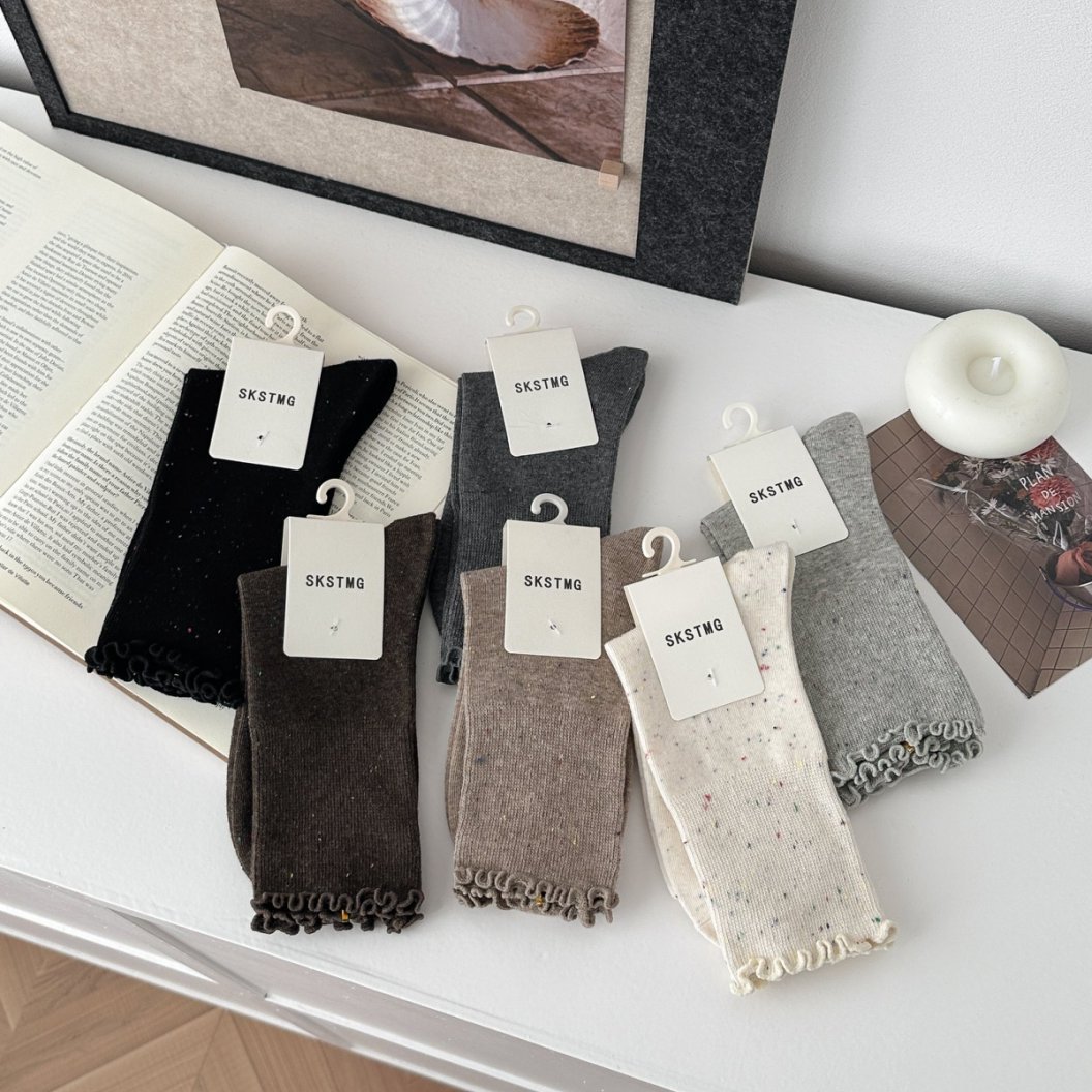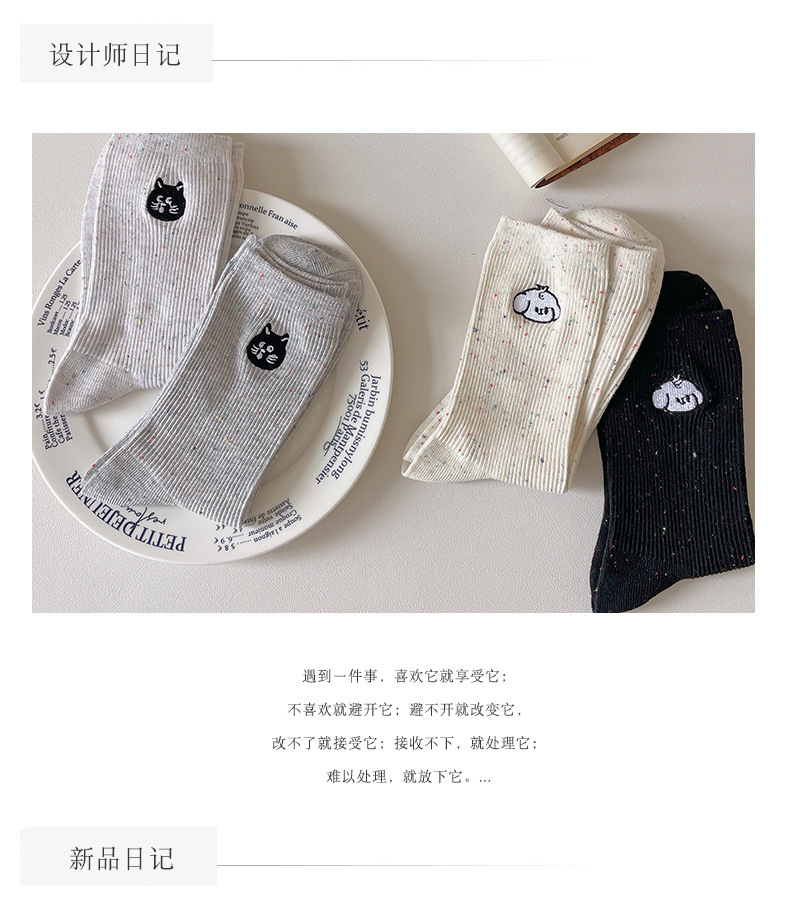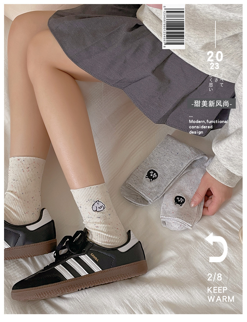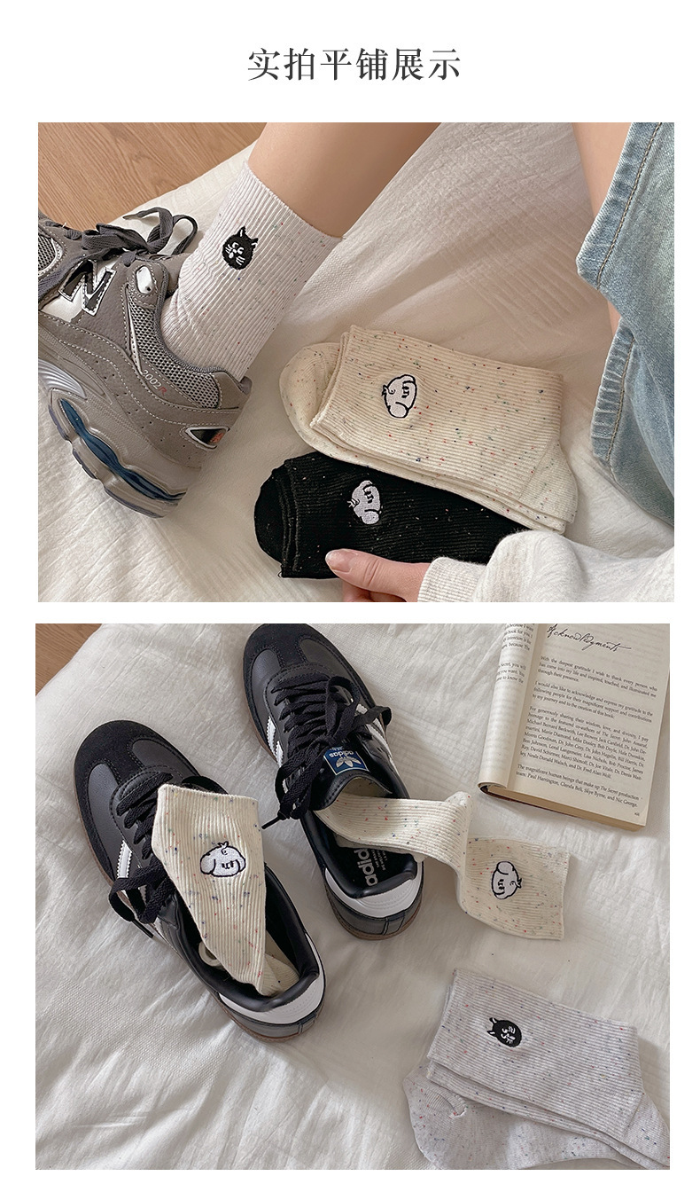 漫画刺繍靴下子供秋冬ミドルソックスかわいい日系綿ドット糸ins潮色スタッキングソックス春夏
