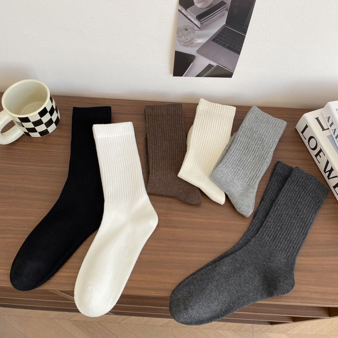 靴下の女性秋冬菱格羊毛靴下の純色は中筒靴下ins保温綿靴下の靴下の卸売りに合わせている