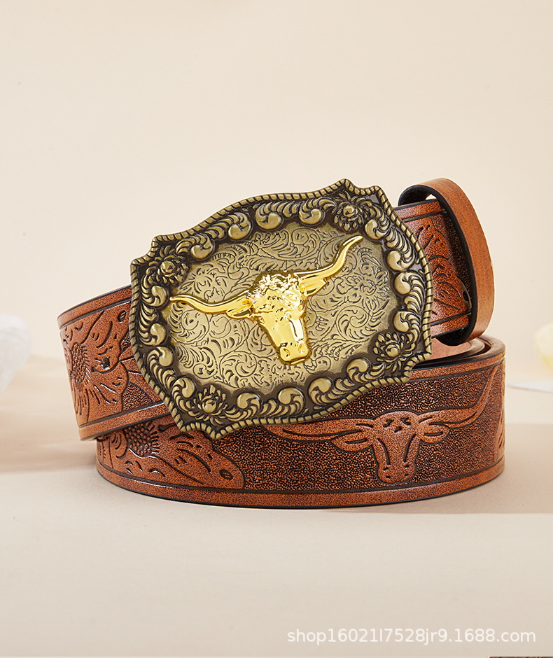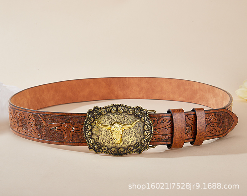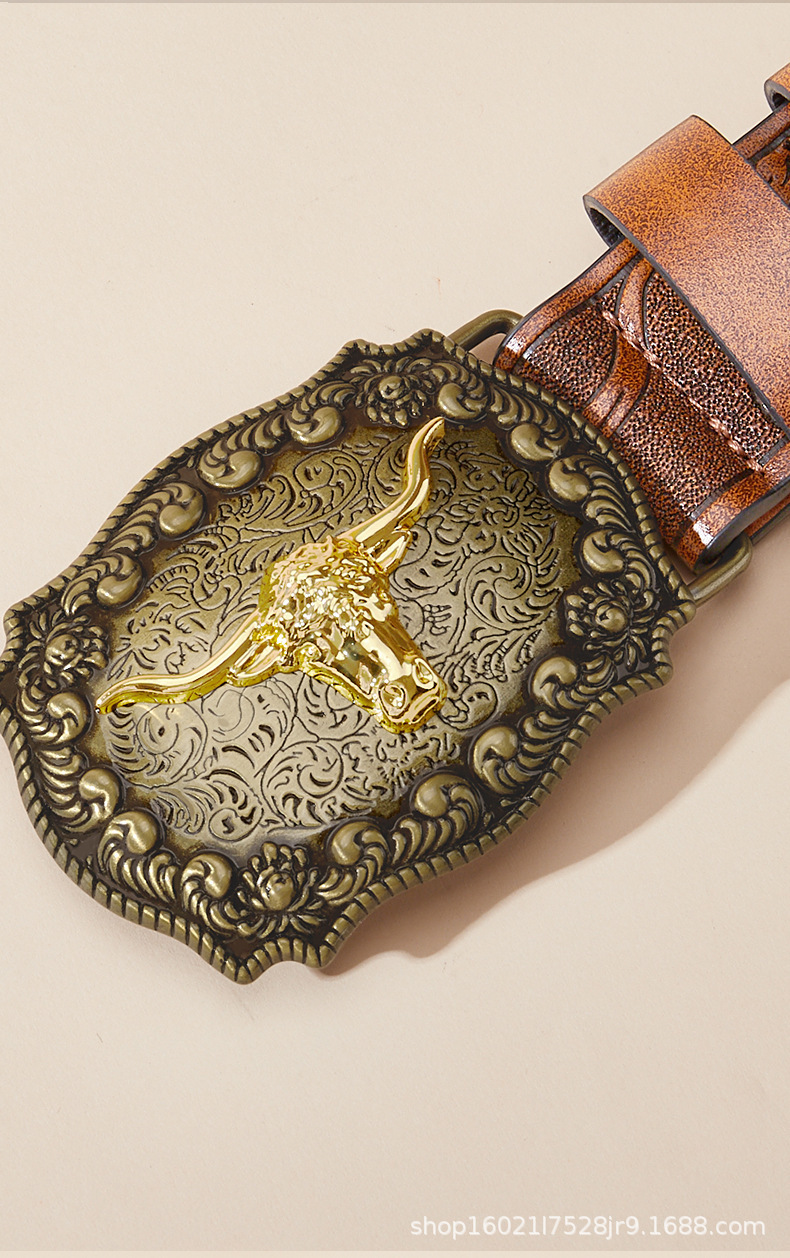 クロスボーダーウエスタンカウボーイベルト、新型牛頭大型バックル、トレンディな若者向けベルト、アメリカンスタイルのストリートファッション、パンツ用ベルト