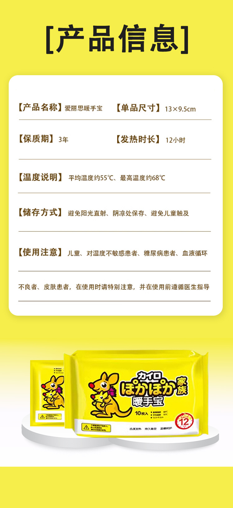 暖宝宝日本爱丽思袋鼠暖贴发热贴女生暖手贴宫暖贴大姨妈经期药贴