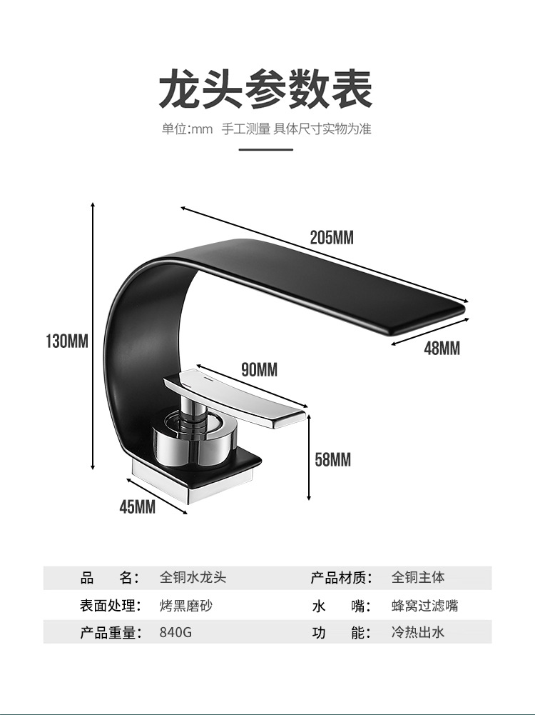 全銅洗面器冷熱蛇口洗面器洗面器洗面台下盆黒白色滝単孔蛇口