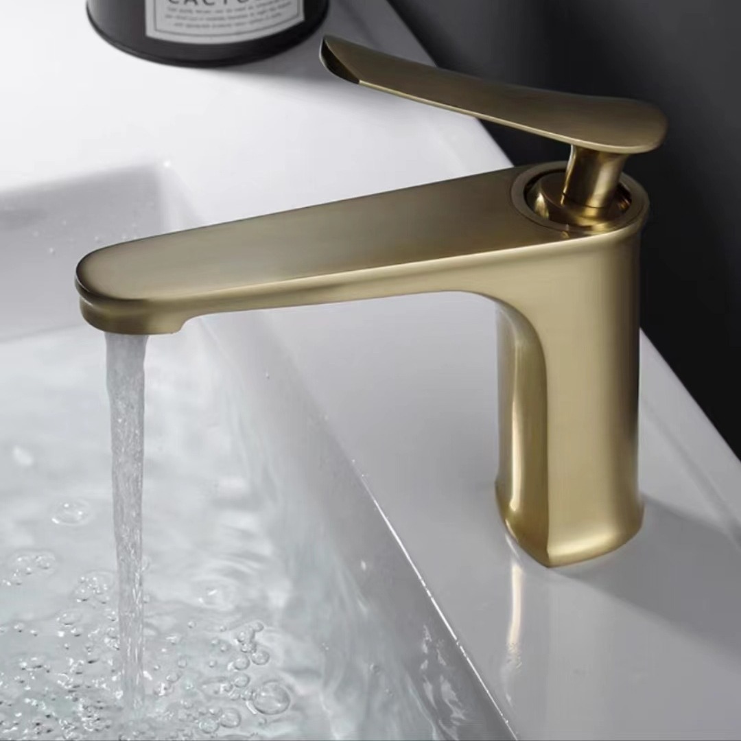 全銅製工場卸売 家庭用金色冷温水洗面台蛇口 モダンでシンプルで耐久性のある洗面台・水切りシンク
