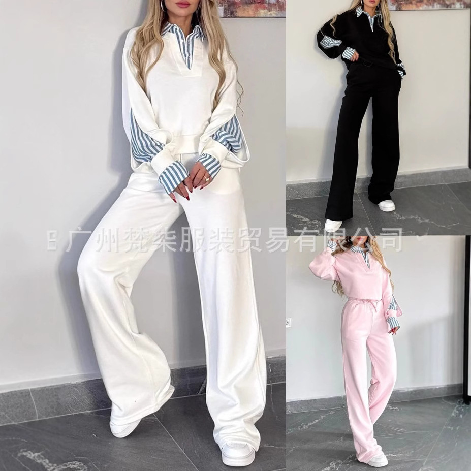 2025 ヨーロッパとアメリカの秋冬アマゾン AliExpress 新しいカジュアルファッション長袖トップワイドレッグパンツスーツ