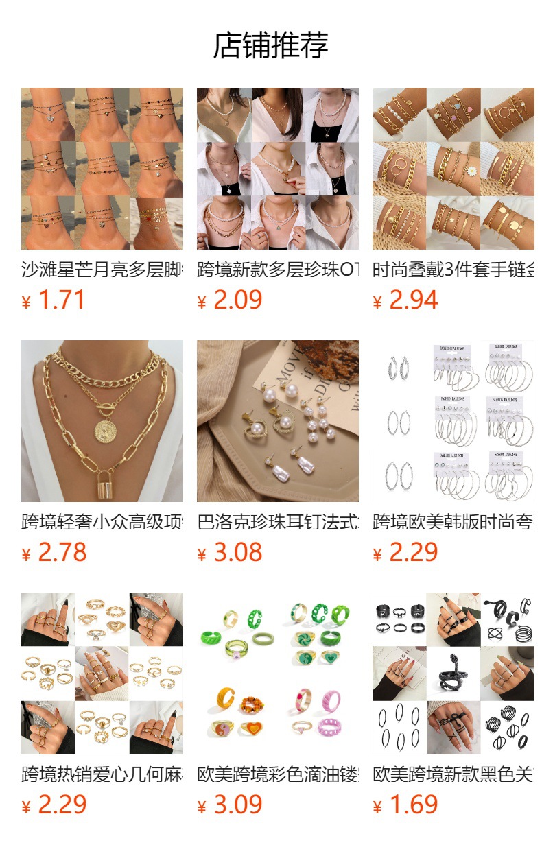 专注于跨境戒指/耳环/项链套装和手/脚链
