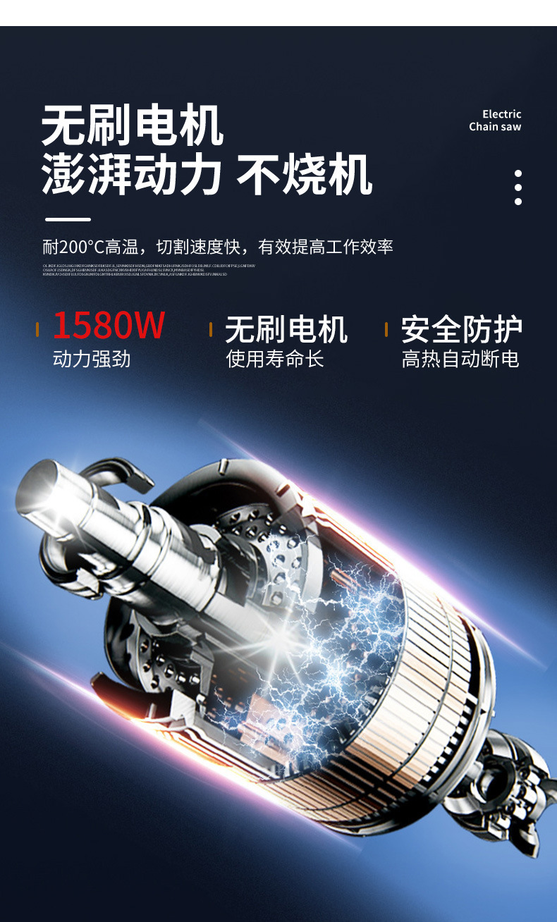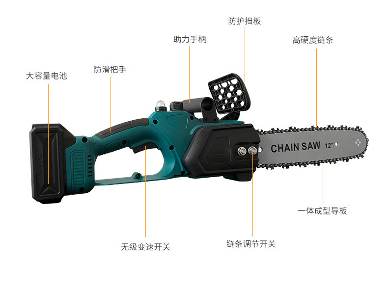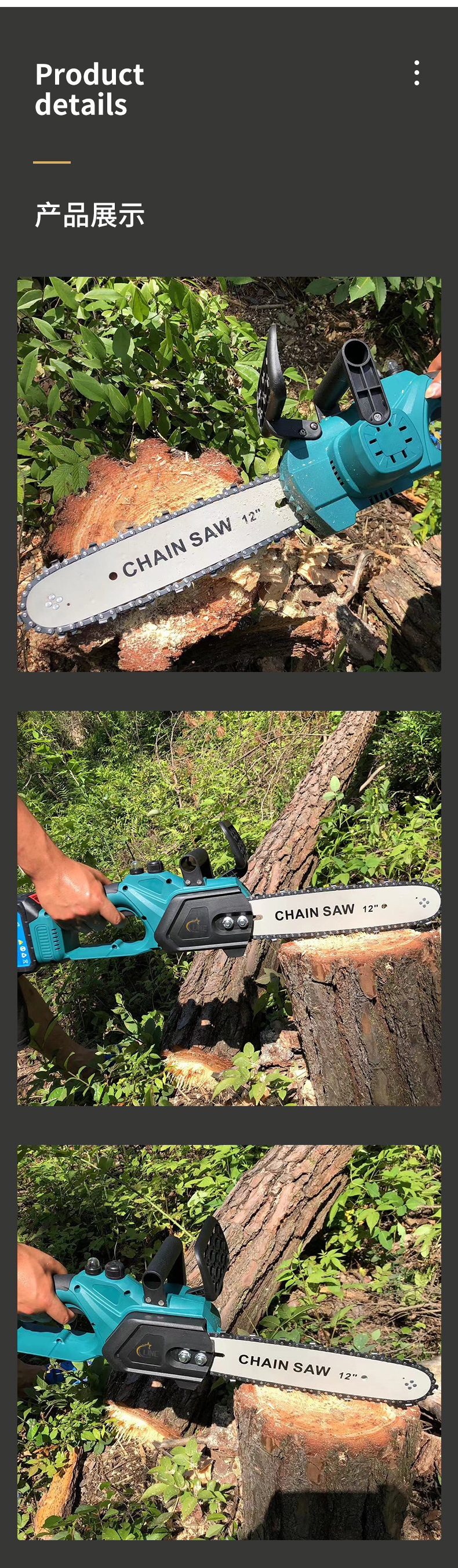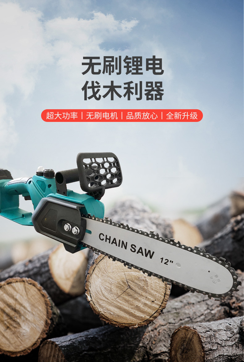 跨境新款12寸无刷锂电锯手持式大功率理电锯家用充电式电链锯户外