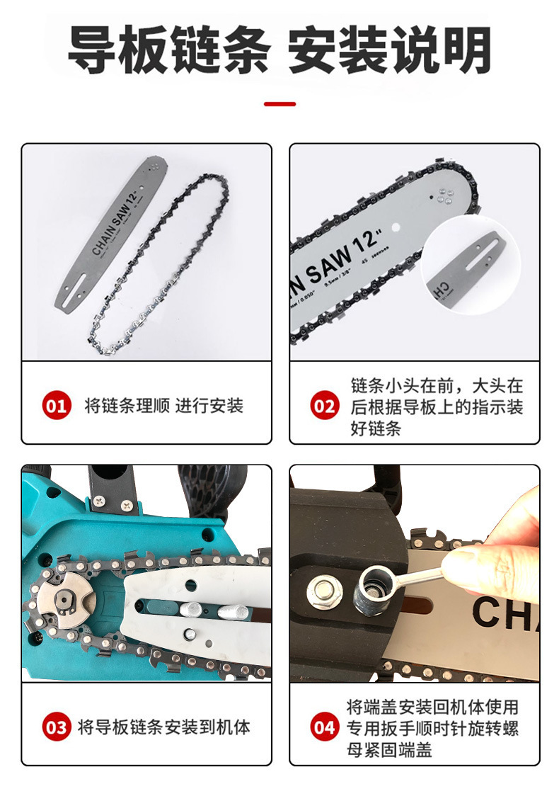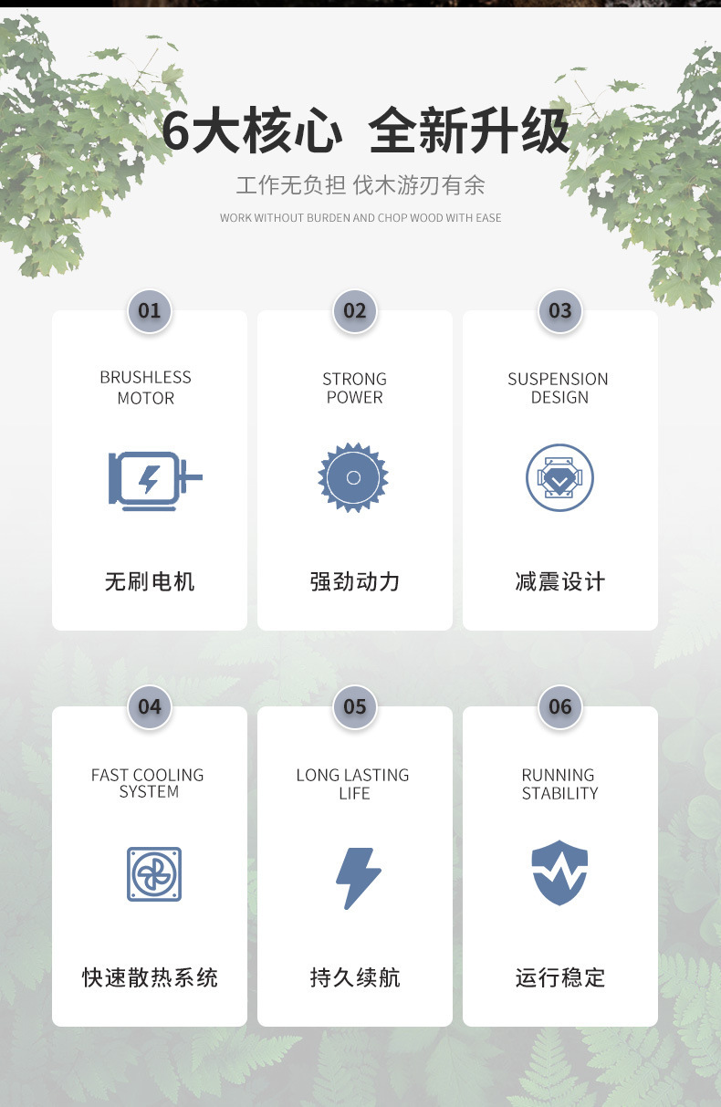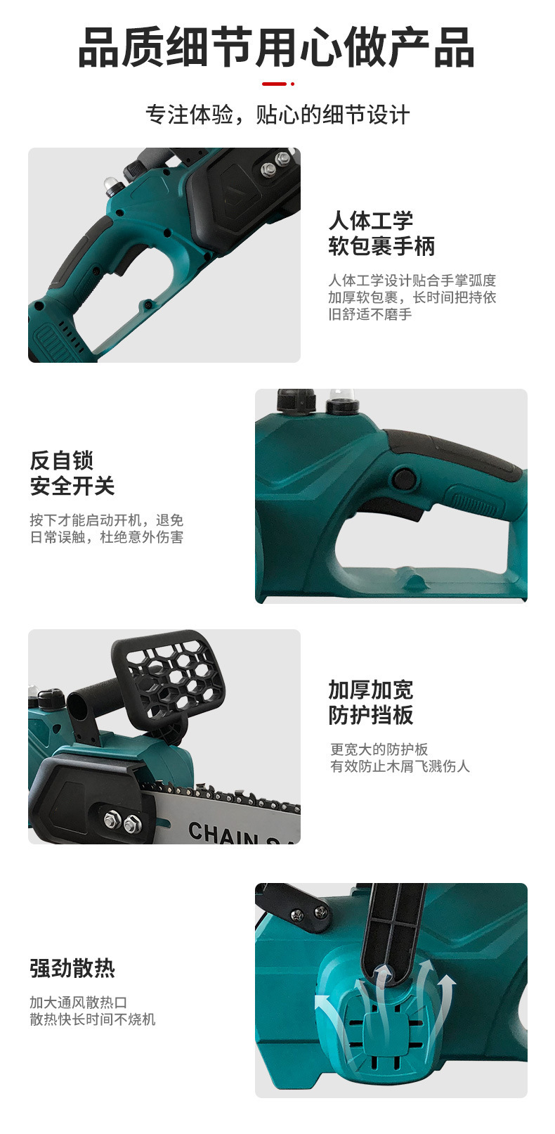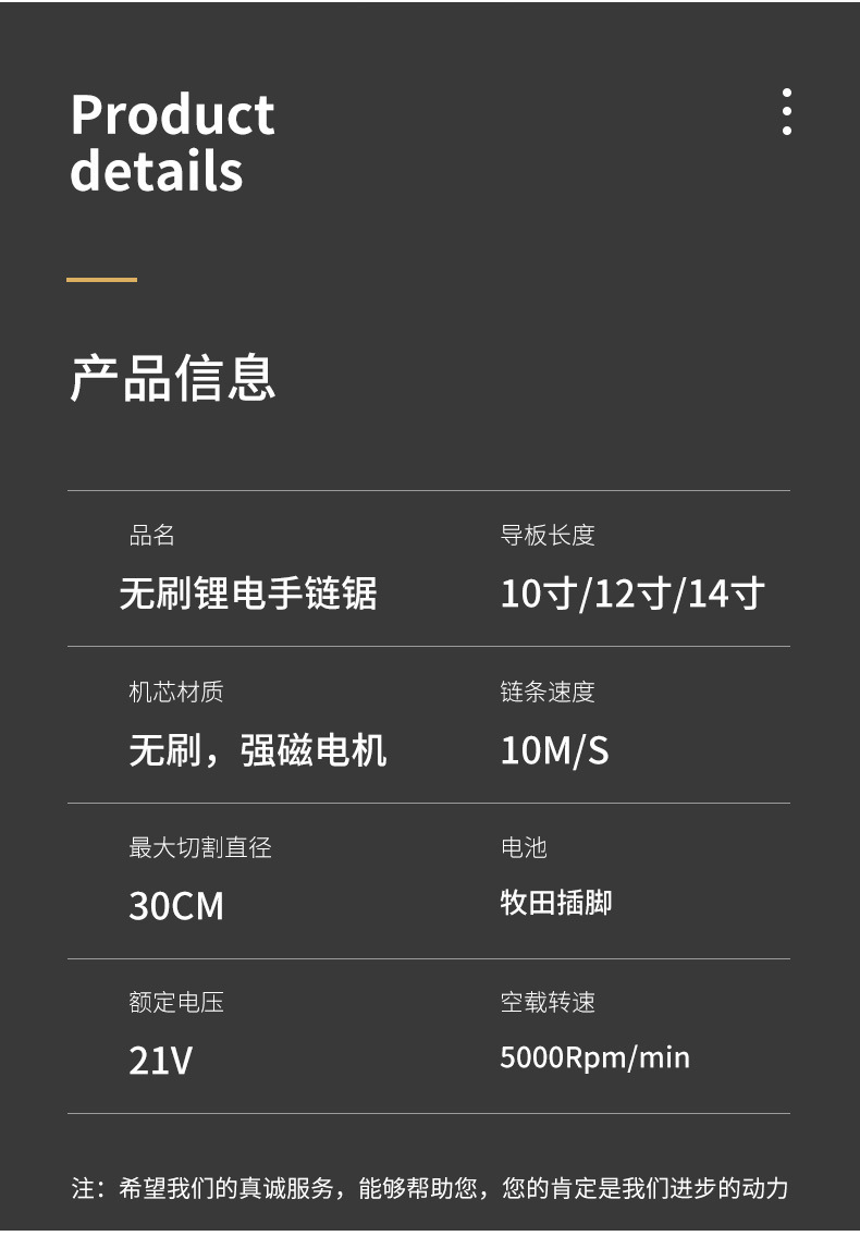 跨境新款12寸无刷锂电锯手持式大功率理电锯家用充电式电链锯户外