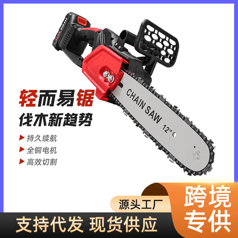 国境を越えた新型12インチ手持ち式ハイパワー理電鋸家庭用充電式チェーンソー屋外電動伐採鋸