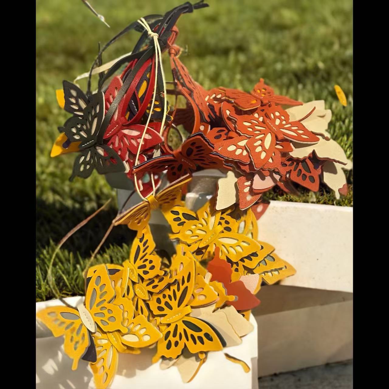 新しい中空蝶チャームクリエイティブ多色蝶革ロープペンダントパーソナライズされた革レディースバッグペンダント