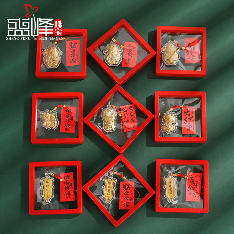 中国風の車のキーホルダーペンダント半完成両面ホットスタンピング安全な富と喜びの装身具卸売