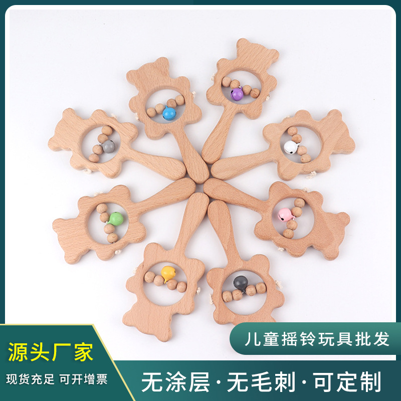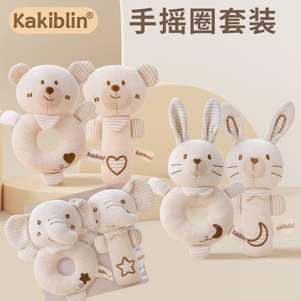 kakiblin有机棉婴儿手摇铃握铃可啃咬手摇圈新生儿安抚玩具批发