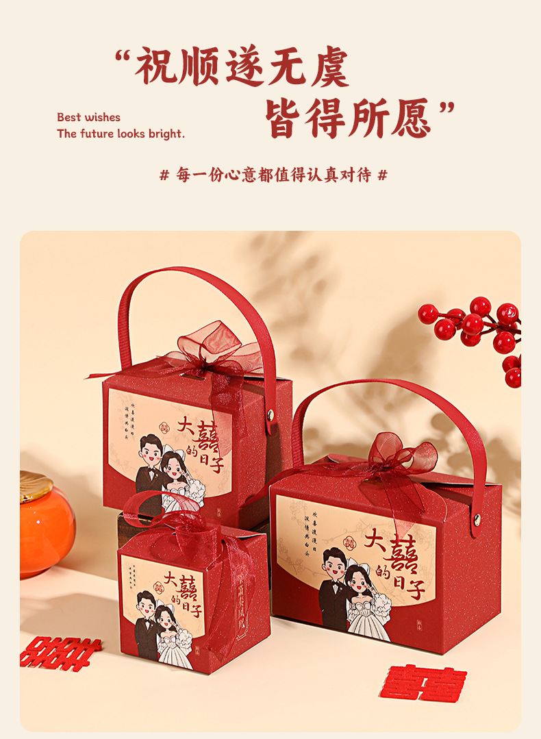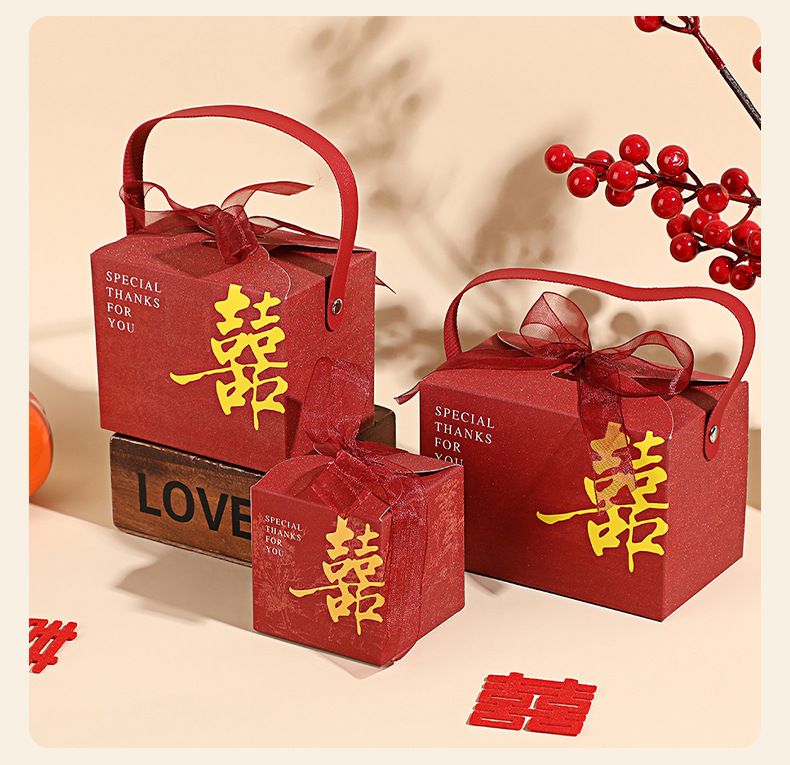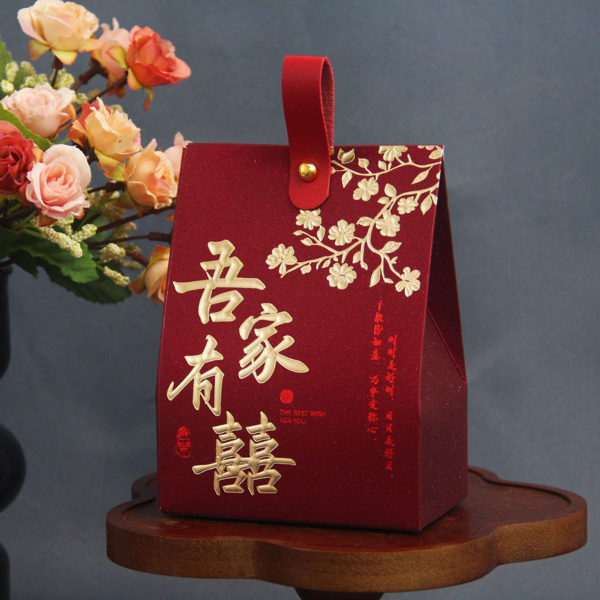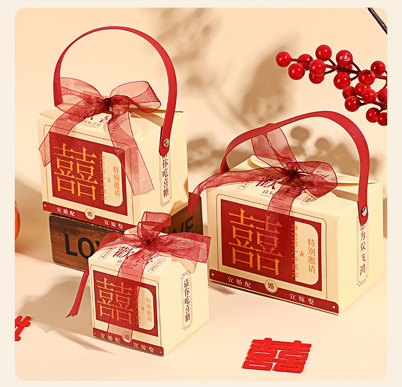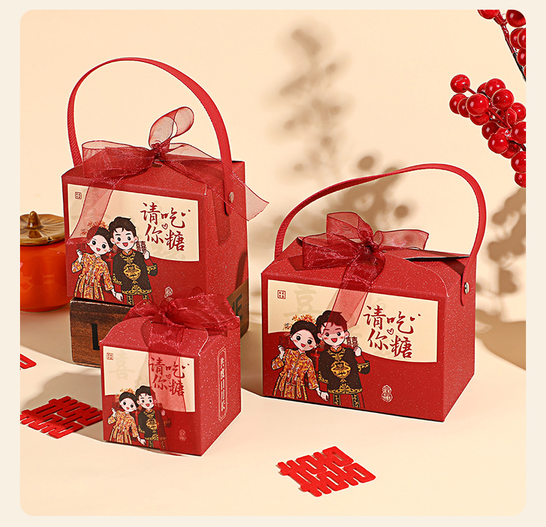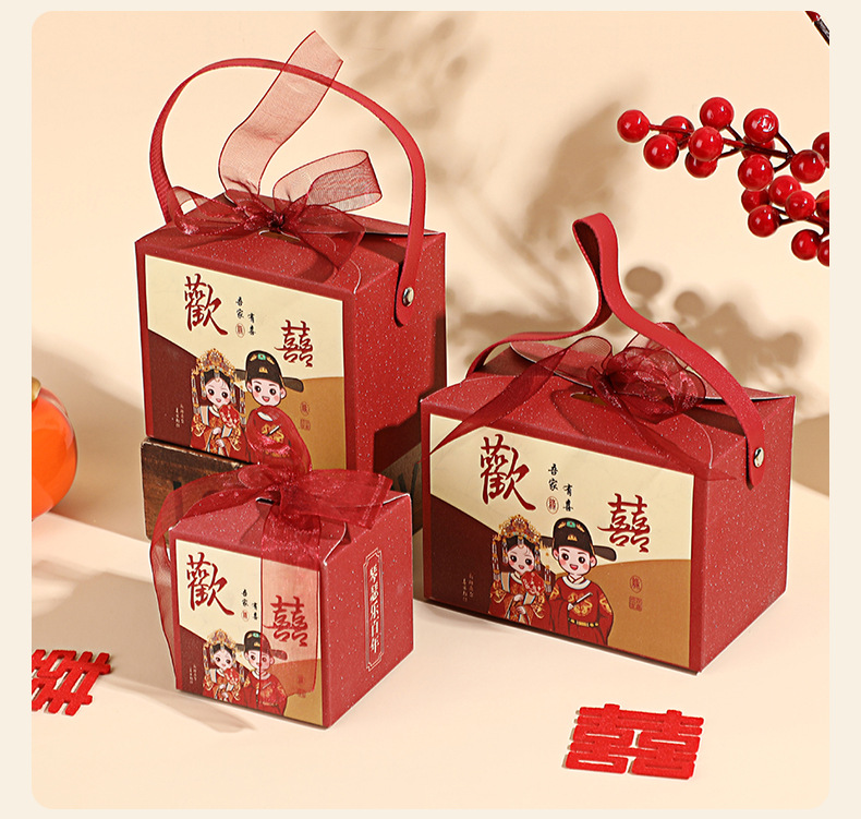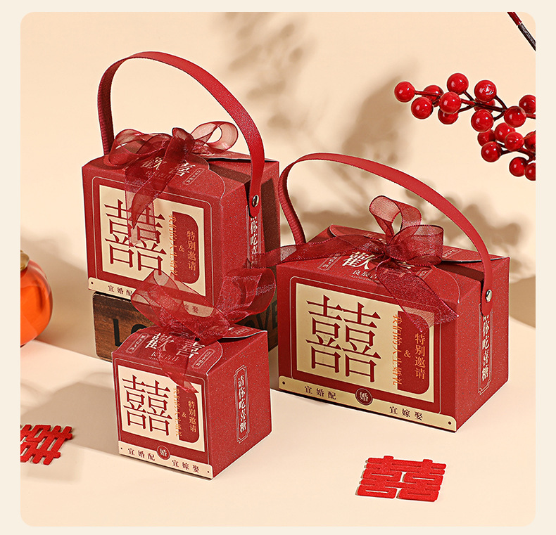 婚約喜糖箱リボン箱結婚礼箱プレゼント中国式喜糖箱キャンディー箱袋手提げ礼箱