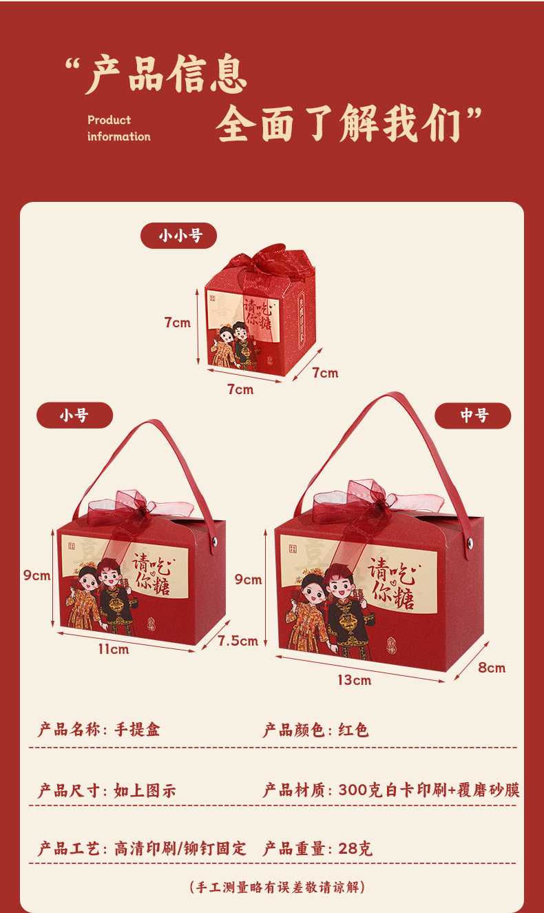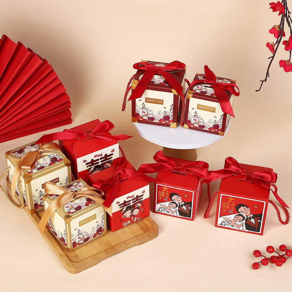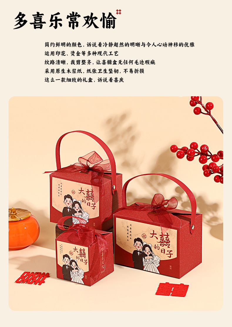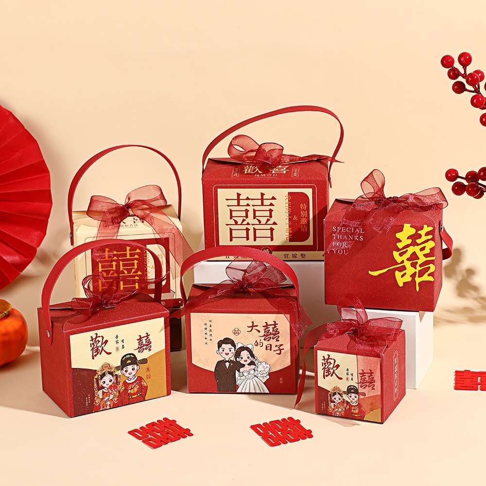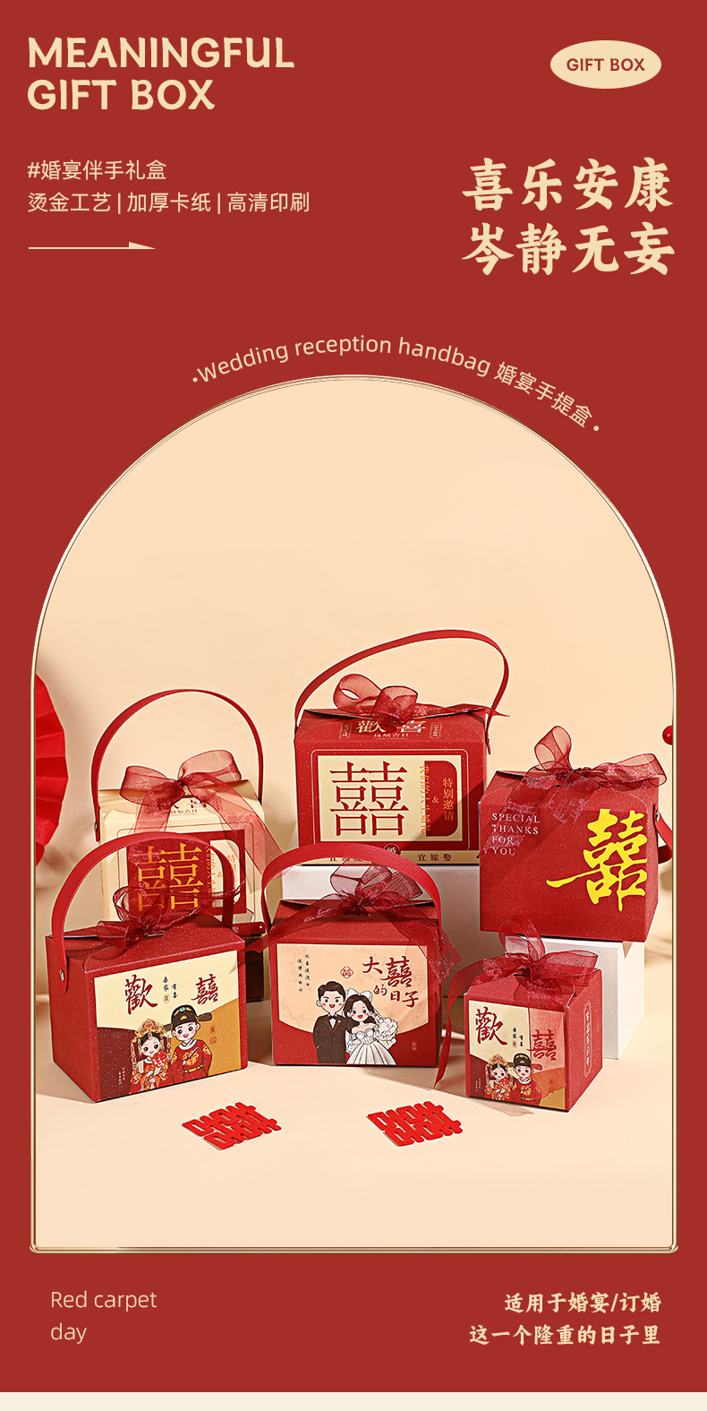婚約喜糖箱リボン箱結婚礼箱プレゼント中国式喜糖箱キャンディー箱袋手提げ礼箱
