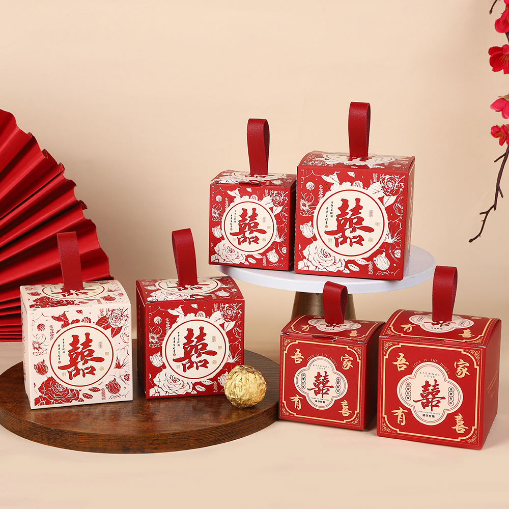 My Home is Happy ライト高級ギフトボックス 新中国風のウェディングキャンディボックス ポータブルウェディングキャンディボックス 空箱 正方形のウェディングペーパーボックス