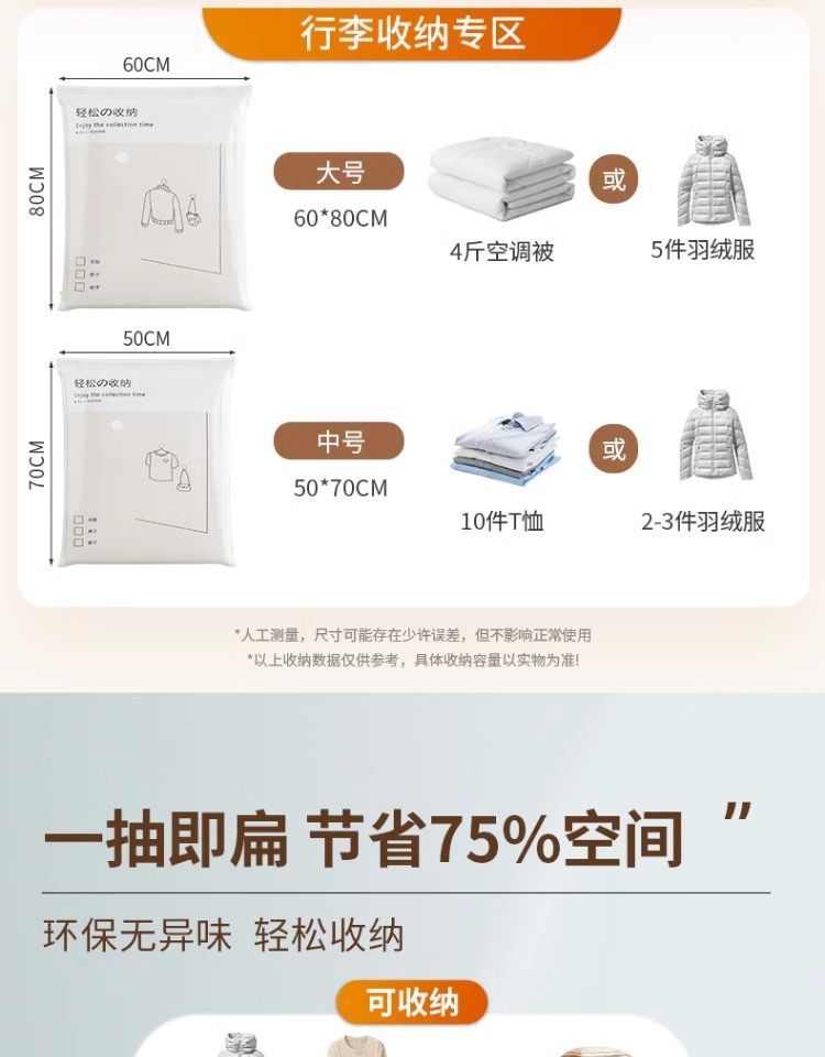 真空引き圧縮袋を厚くして衣類を収納する綿の神器家庭用服布団ダウンジャケット専用袋