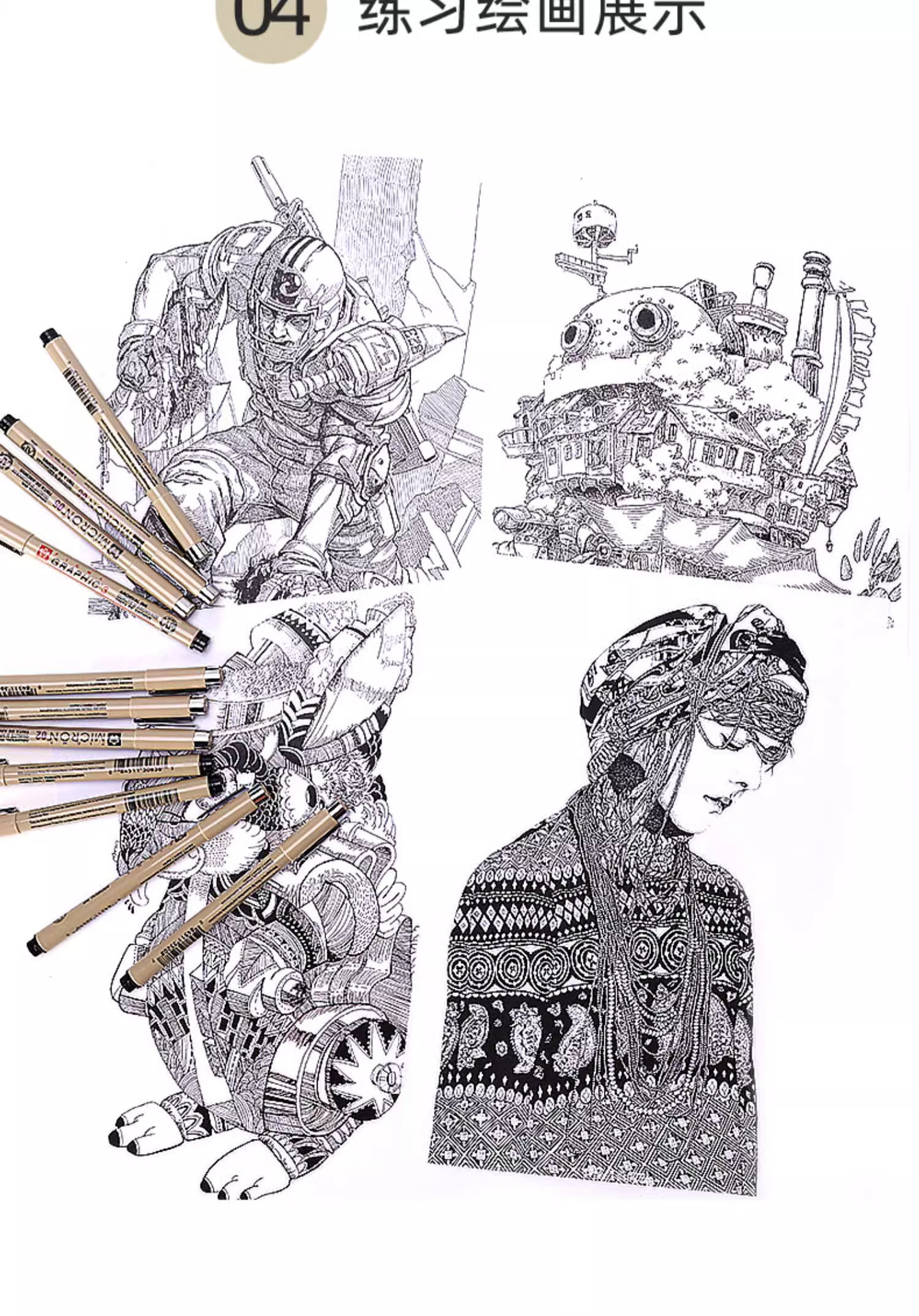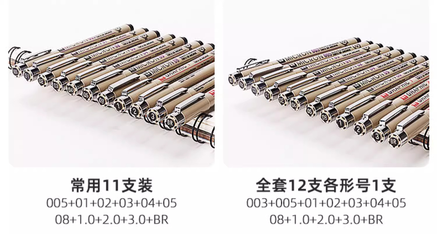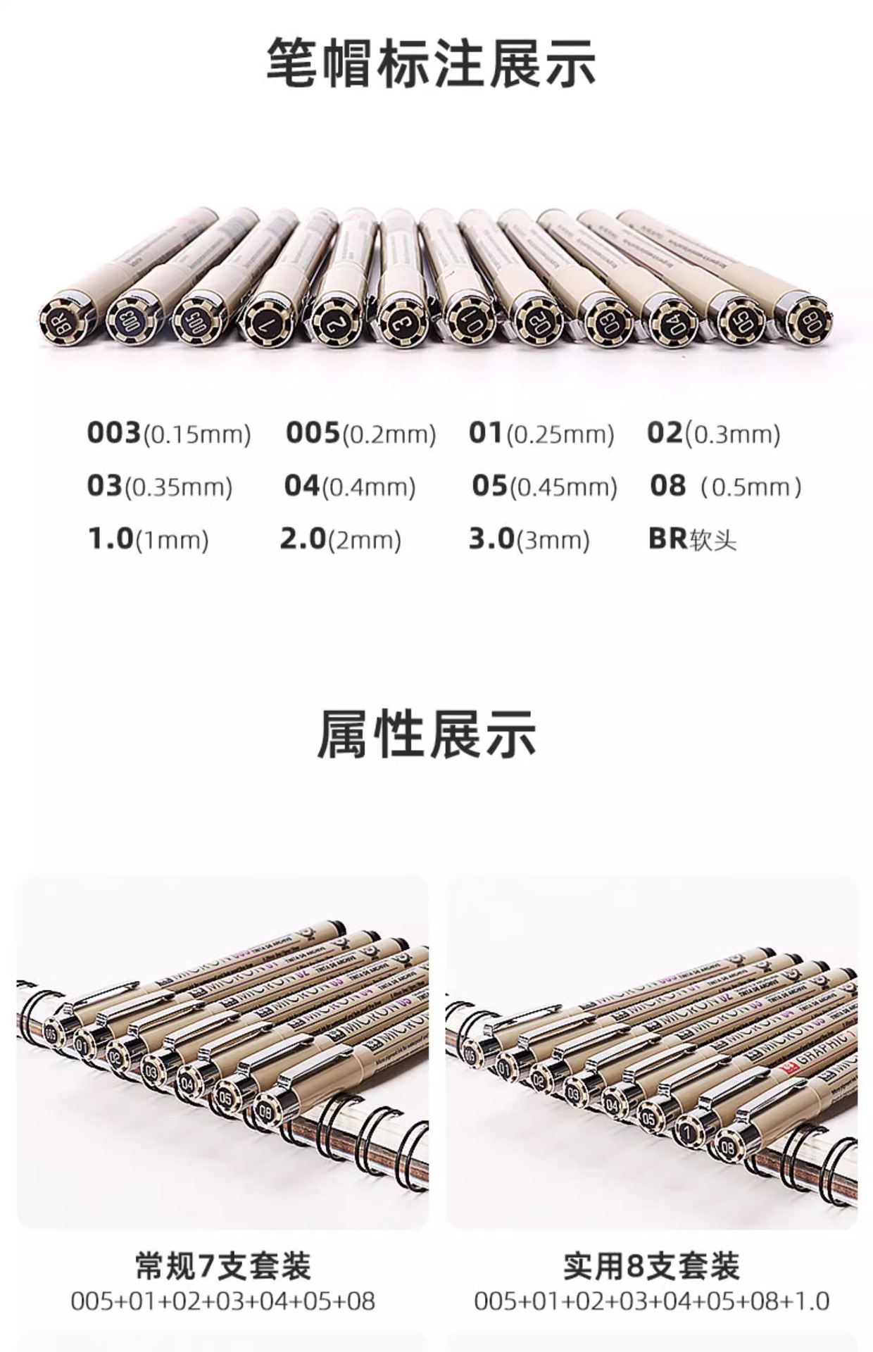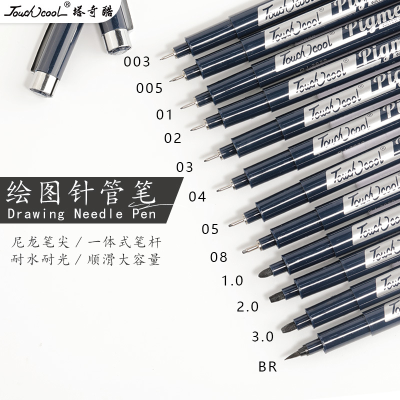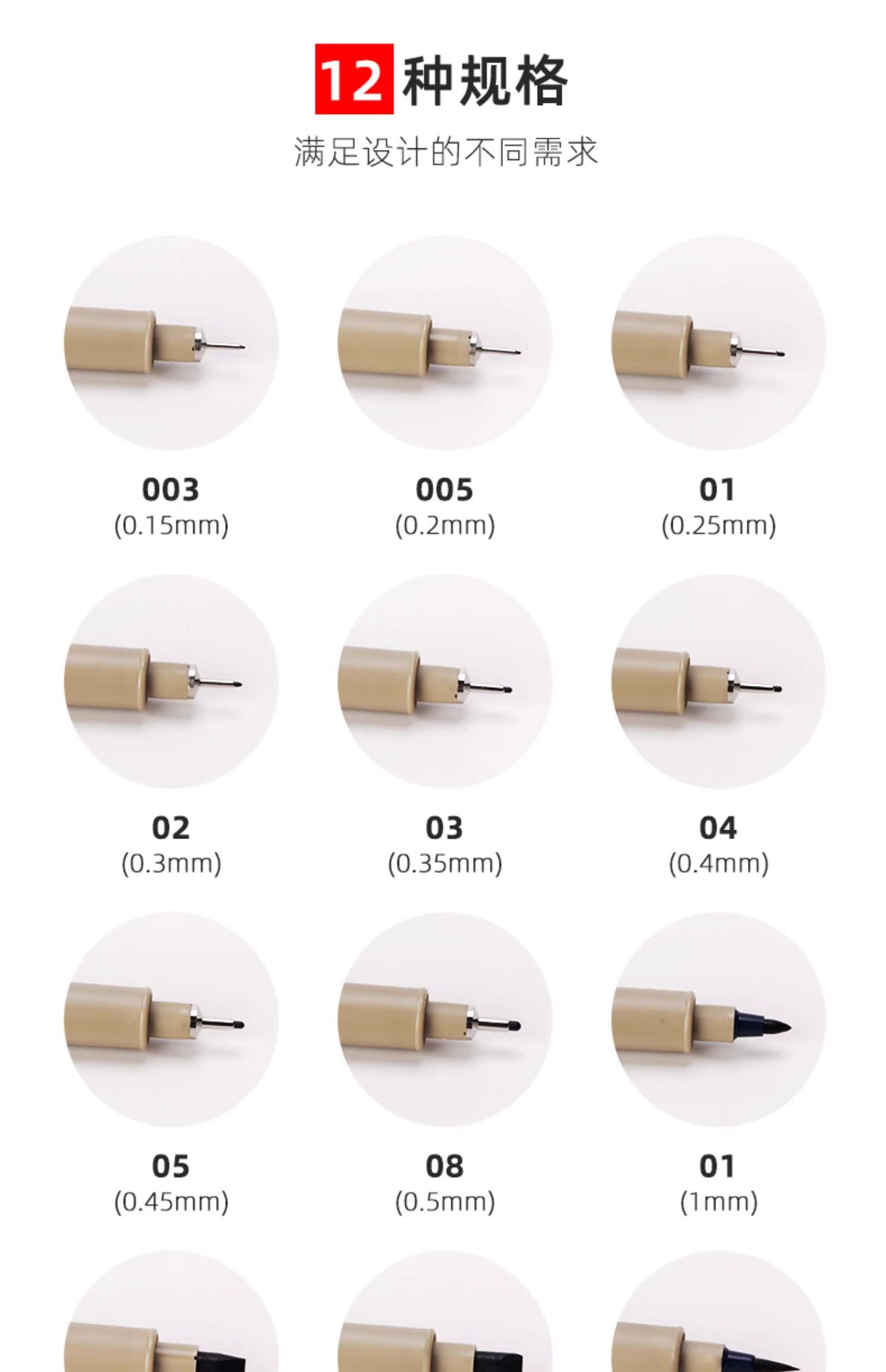 12种类のペン先ニードルペン黒色水性防水漫画絵画手涂り极细学生用オフィスアートペン