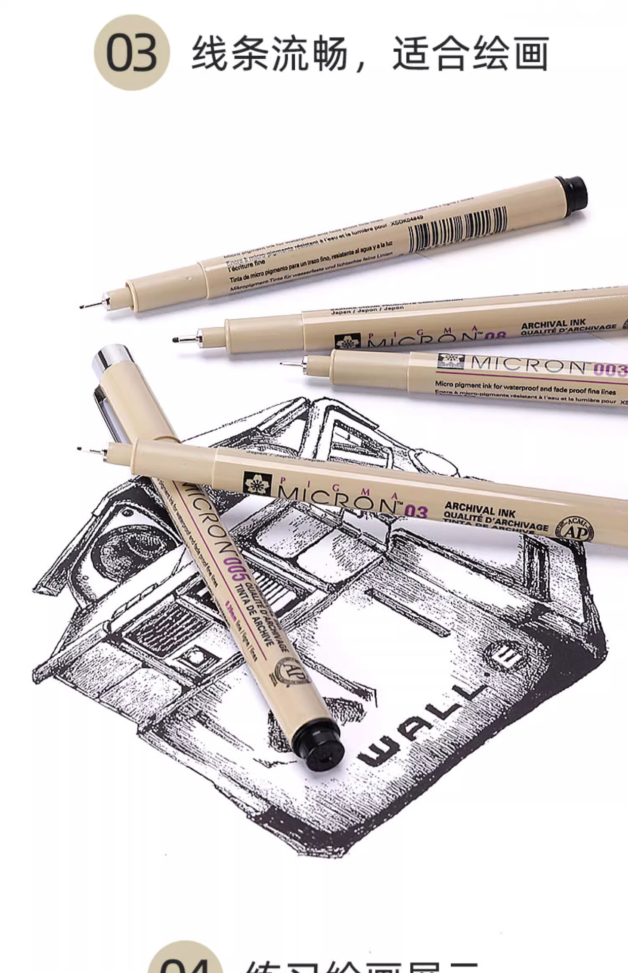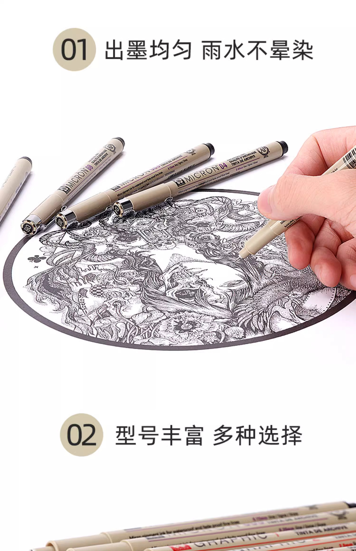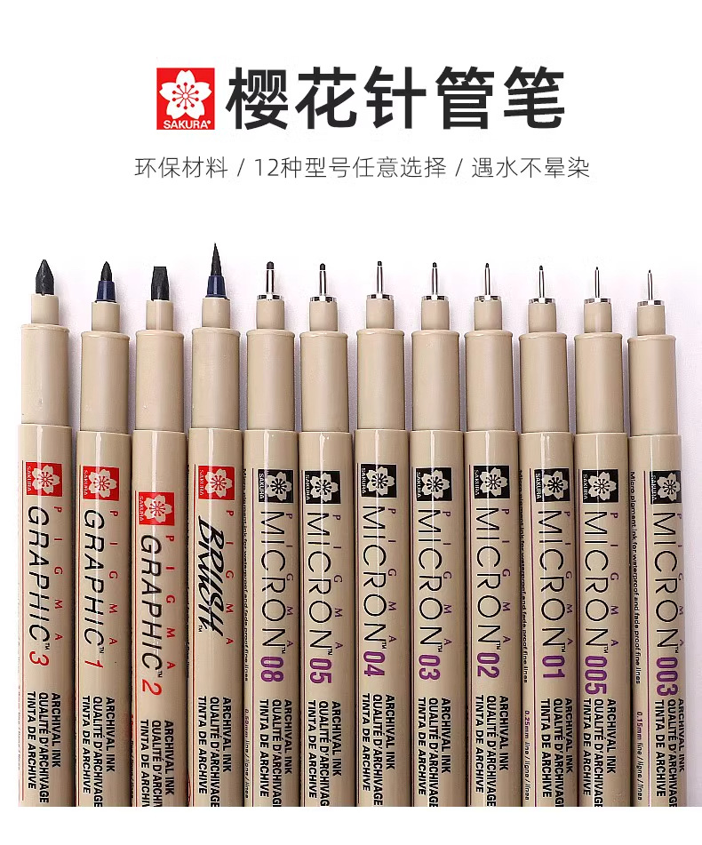 桜線筆針管ペン学生防水美術手描きアニメ建築絵画デザインスケッチペン