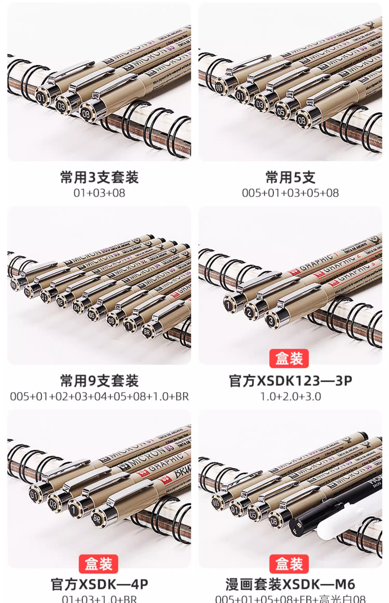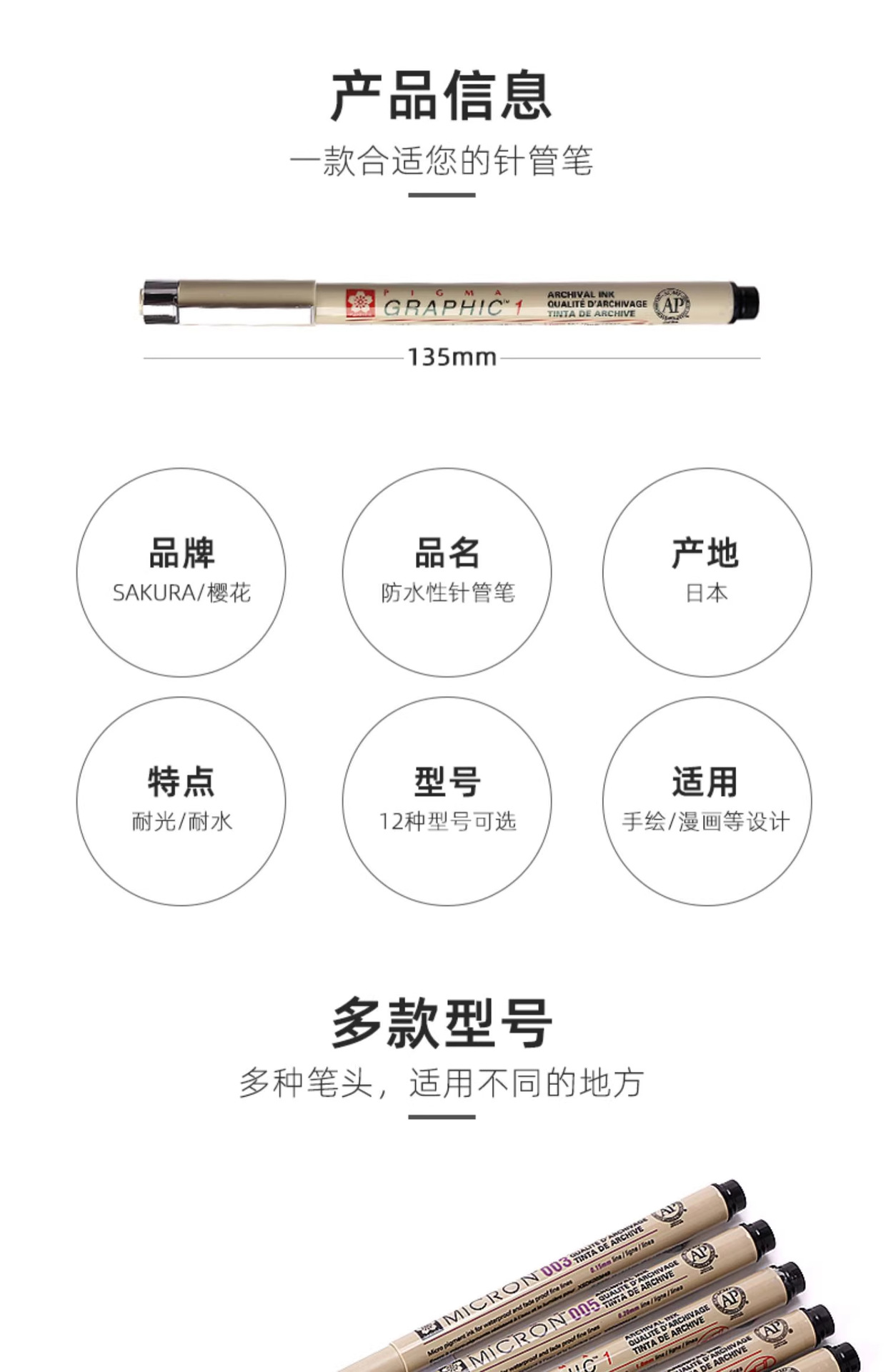 日本樱花针管笔套装防水漫画设计手绘草图笔绘图描图笔勾线针管笔