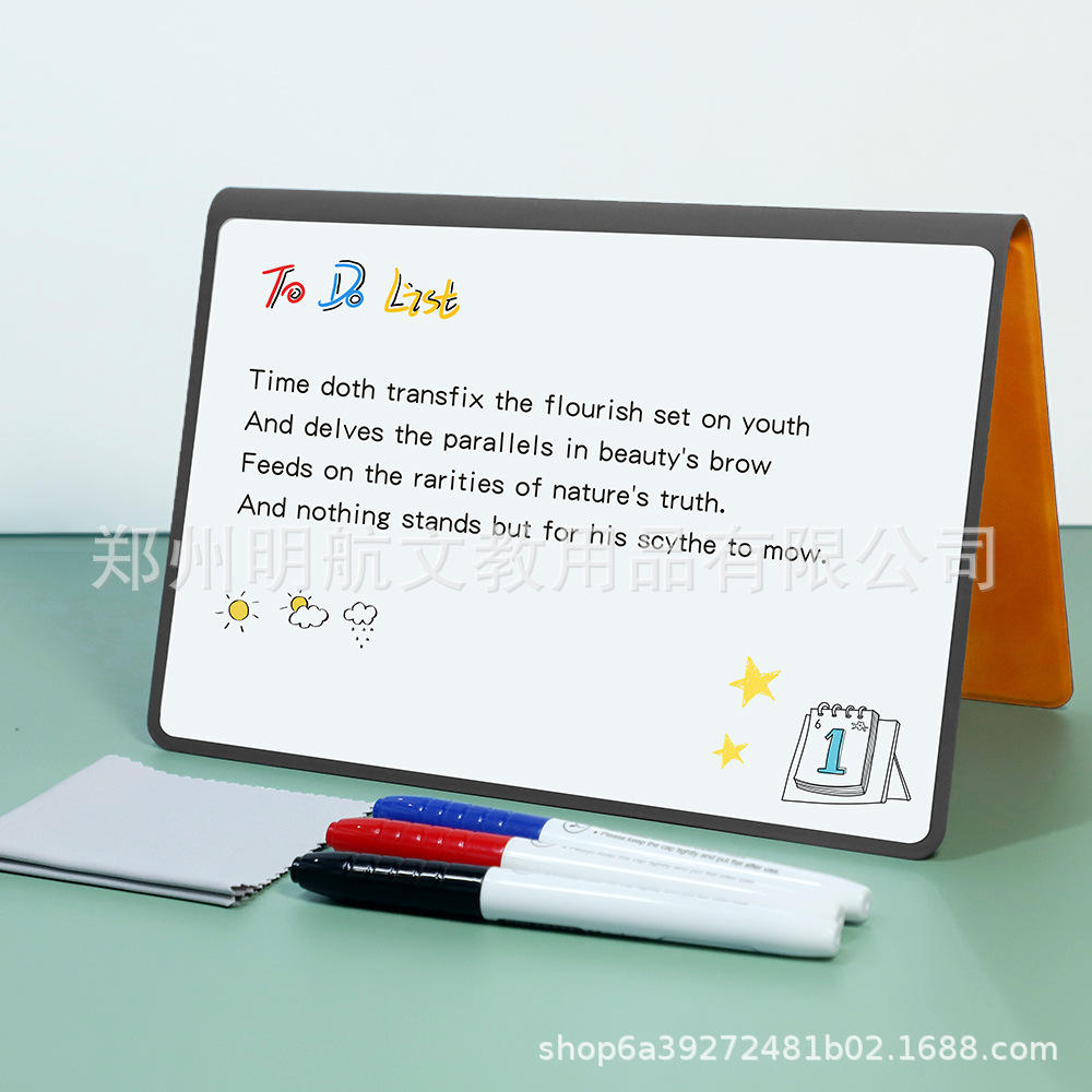 卸売りA4デスクトップスタンド革カバーホワイトボードオフィス伝言子供家庭用草稿黒板ミニメモ板