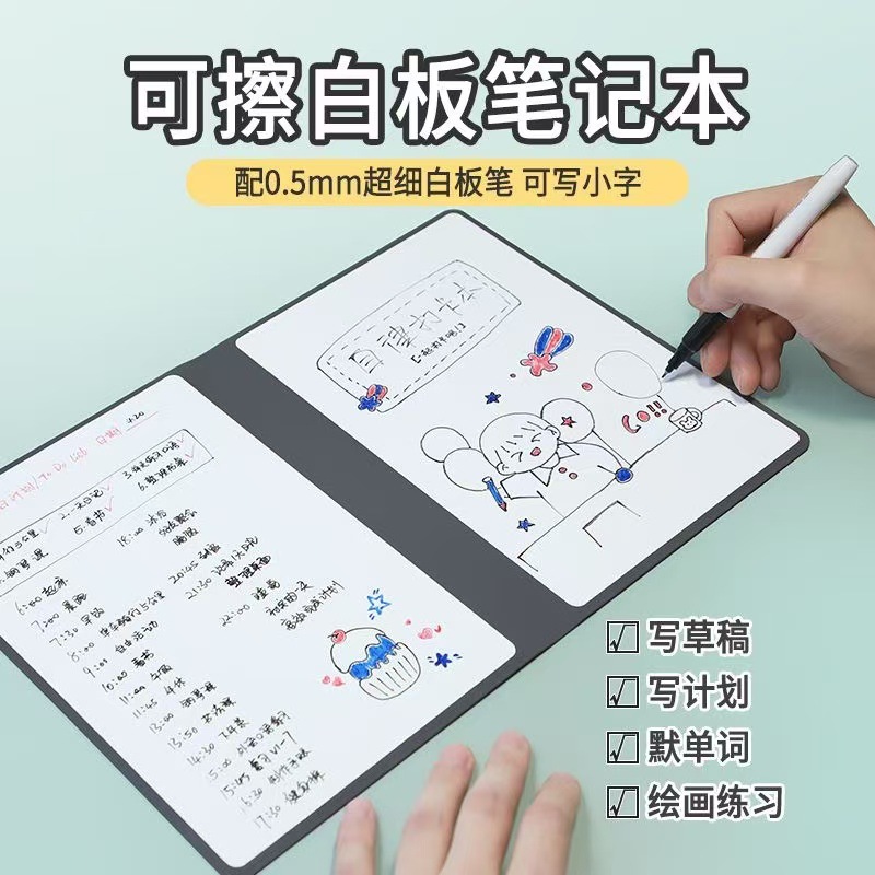 白板笔记本写字板高颜值A5学生儿童草稿本可擦写记事板空白草稿纸