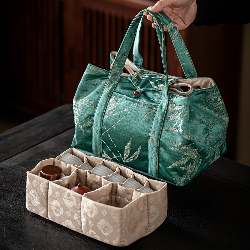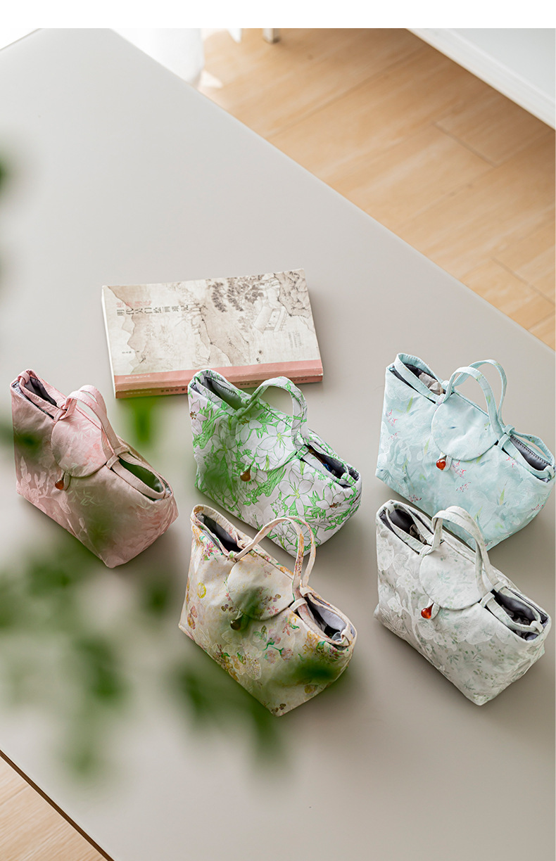 織錦刺繍蝶茶器収納バッグ布芸手提げアウトドア旅行茶器茶事バッグ