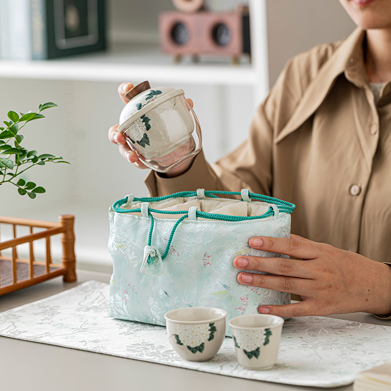 茶具收纳包陶瓷旅行茶具套装户外泡茶壶手提大容量一盖碗三杯布包