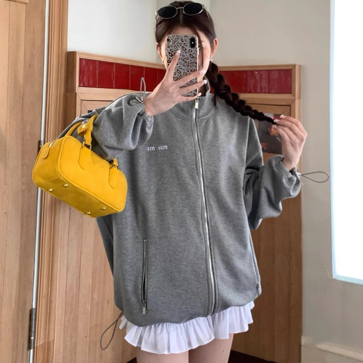 正确版本秋冬新款原标MIU缪家刺绣字母立领拉链开衫卫衣外套男女